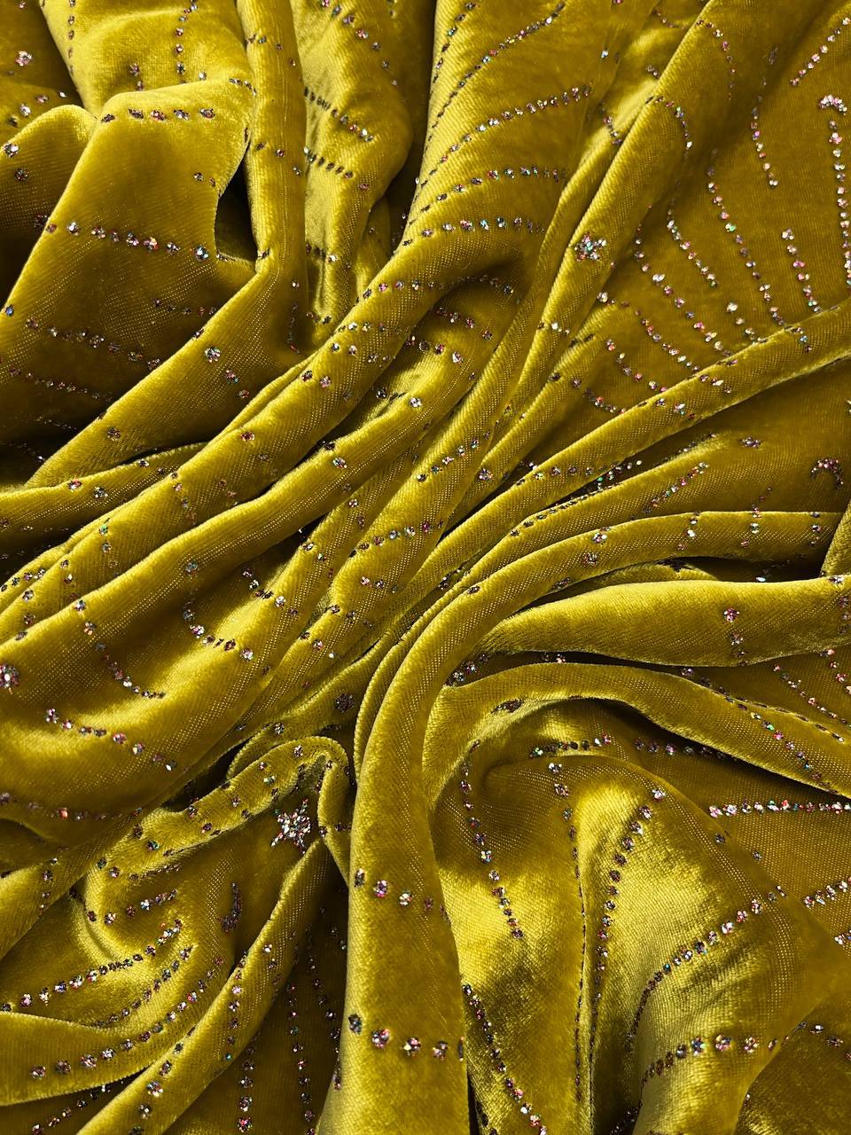 Роскошный сияющий бархат в цвете золотой оливки