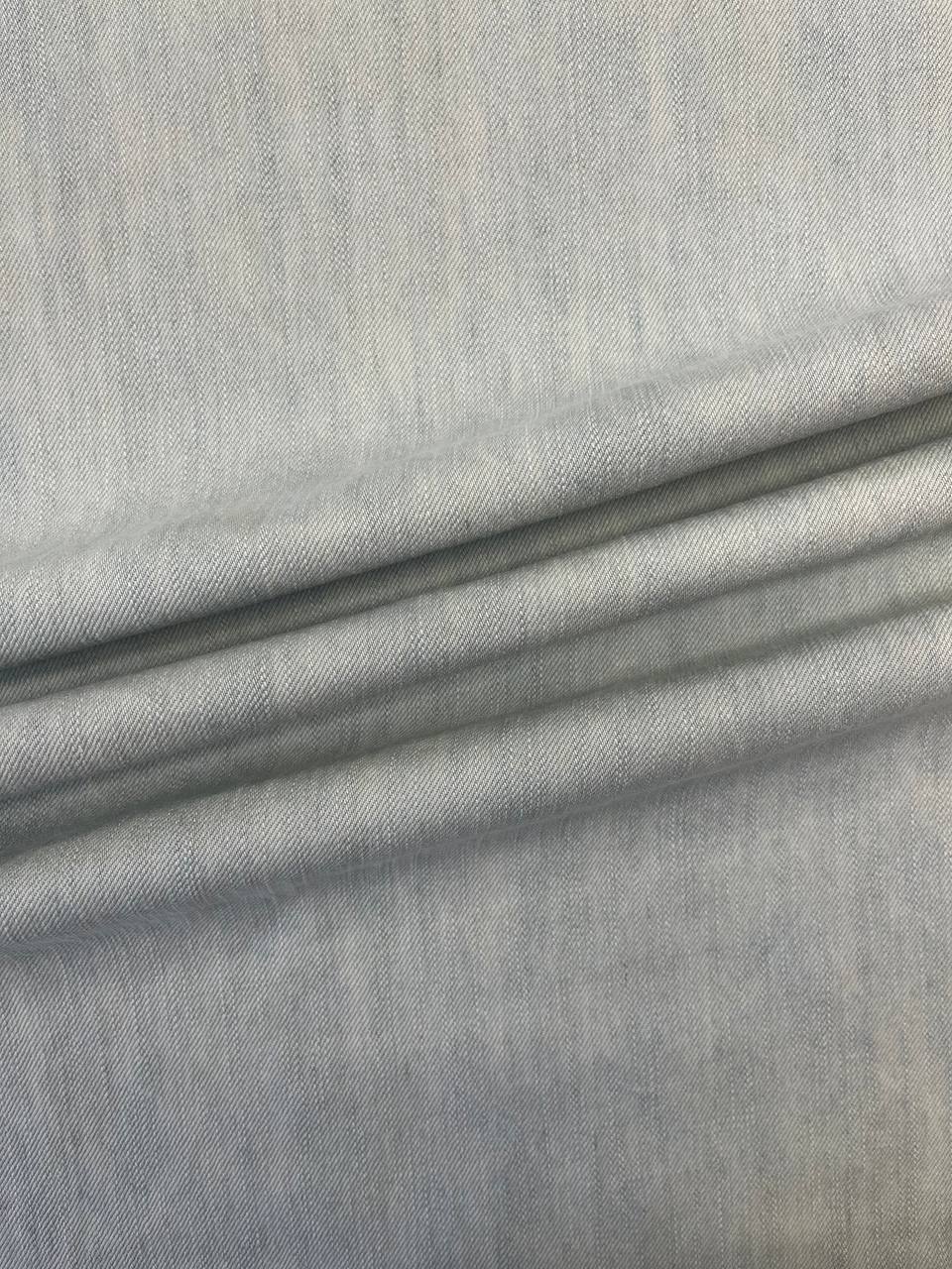 Костюмной плотности, пластичный. Драпируется в складки небольшого объема. Обладает матовый финиш. Стабилен во всех направлениях. Внешне похож на «вареный» деним.