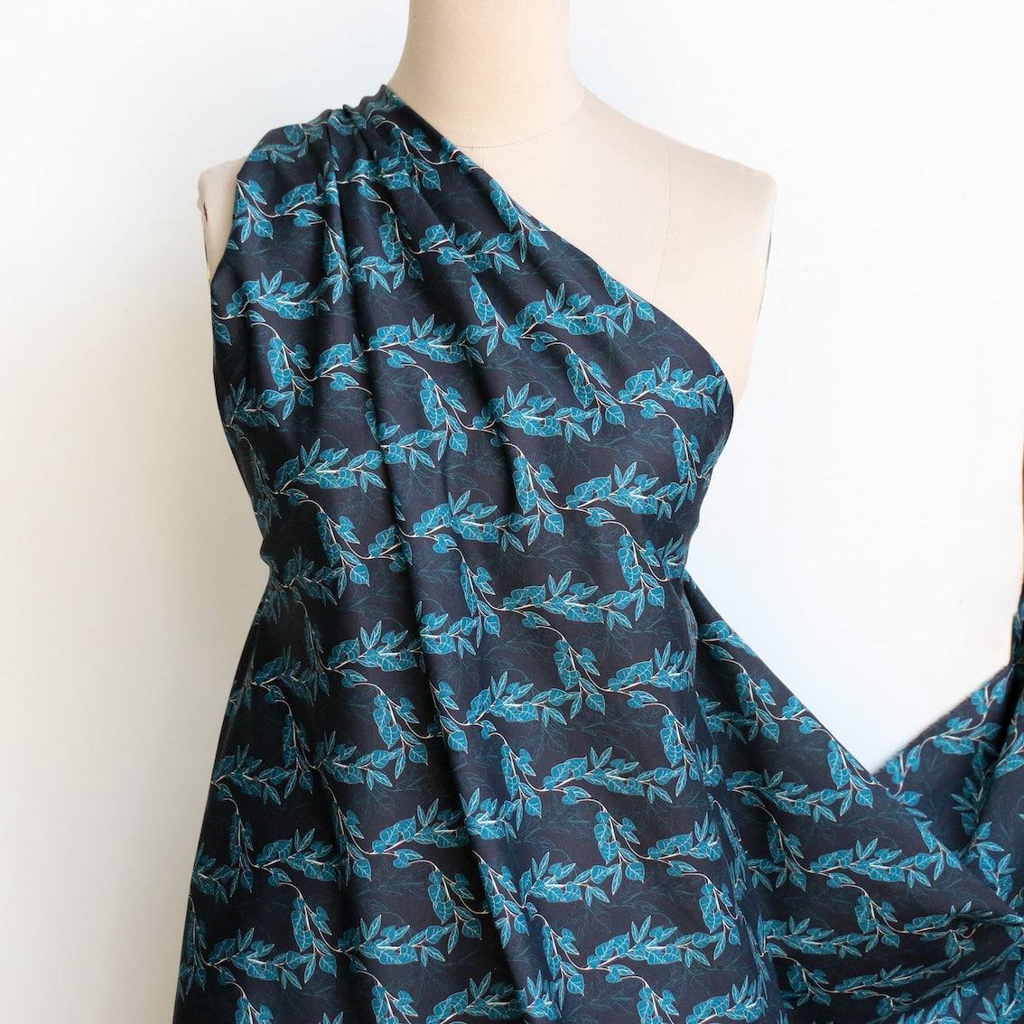 Гладкий, слегка просвечивает на просвет. Впишется в мужской гардероб и женский. Идеален для гавайской рубашки, также можно сшить летний сарафан.