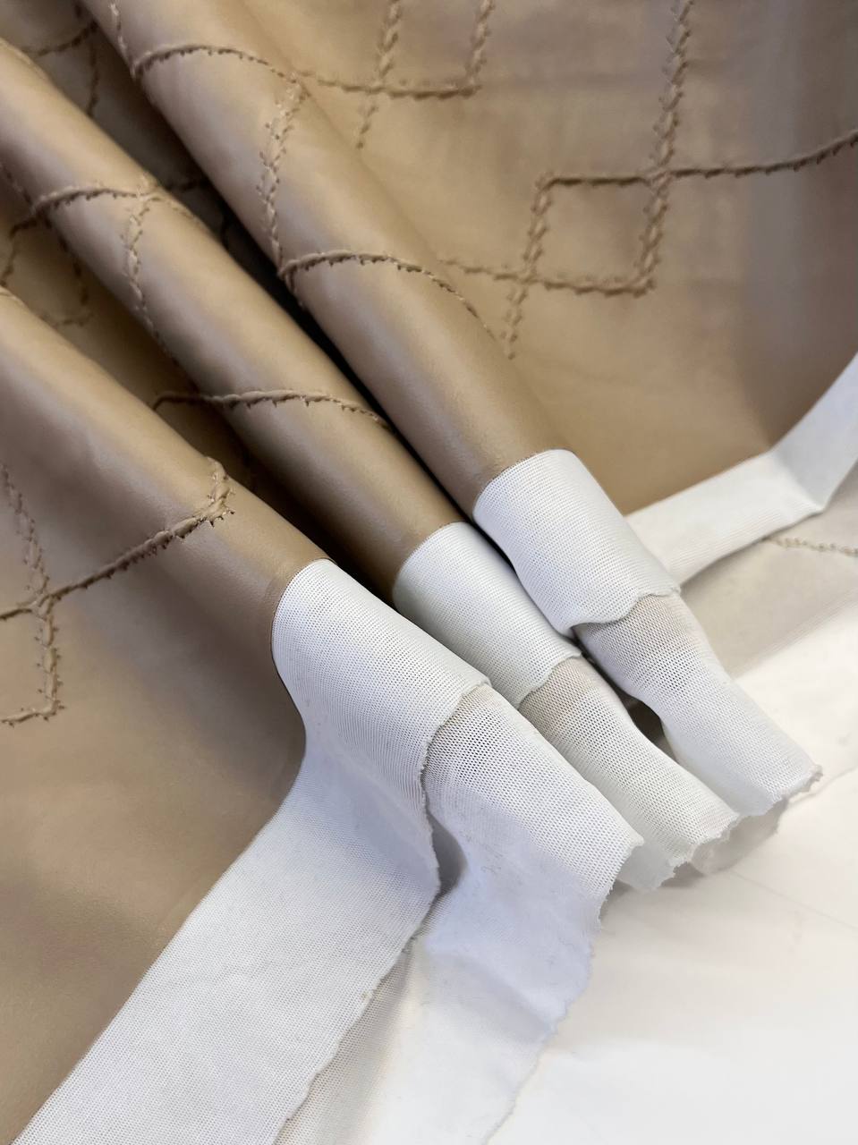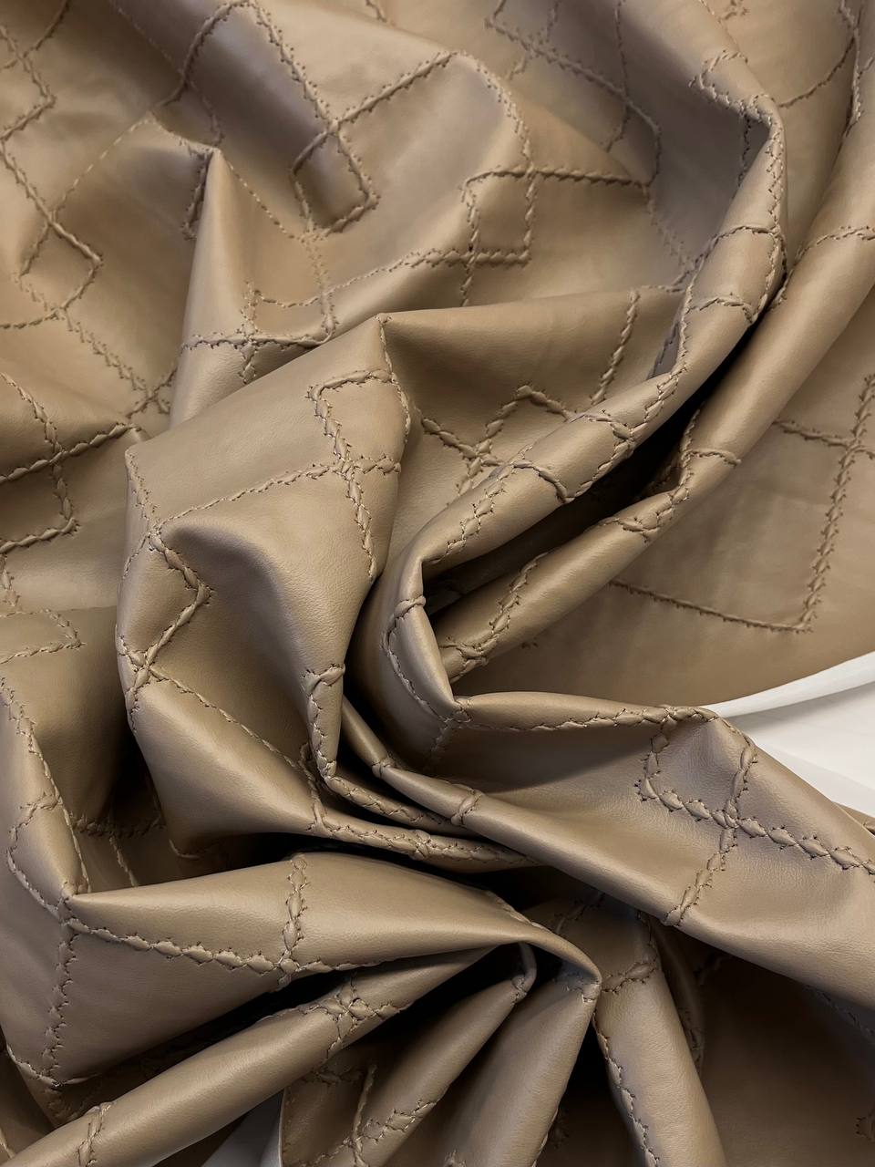 Искусственная кожа с геометричной вышивкой в бежевом цвете