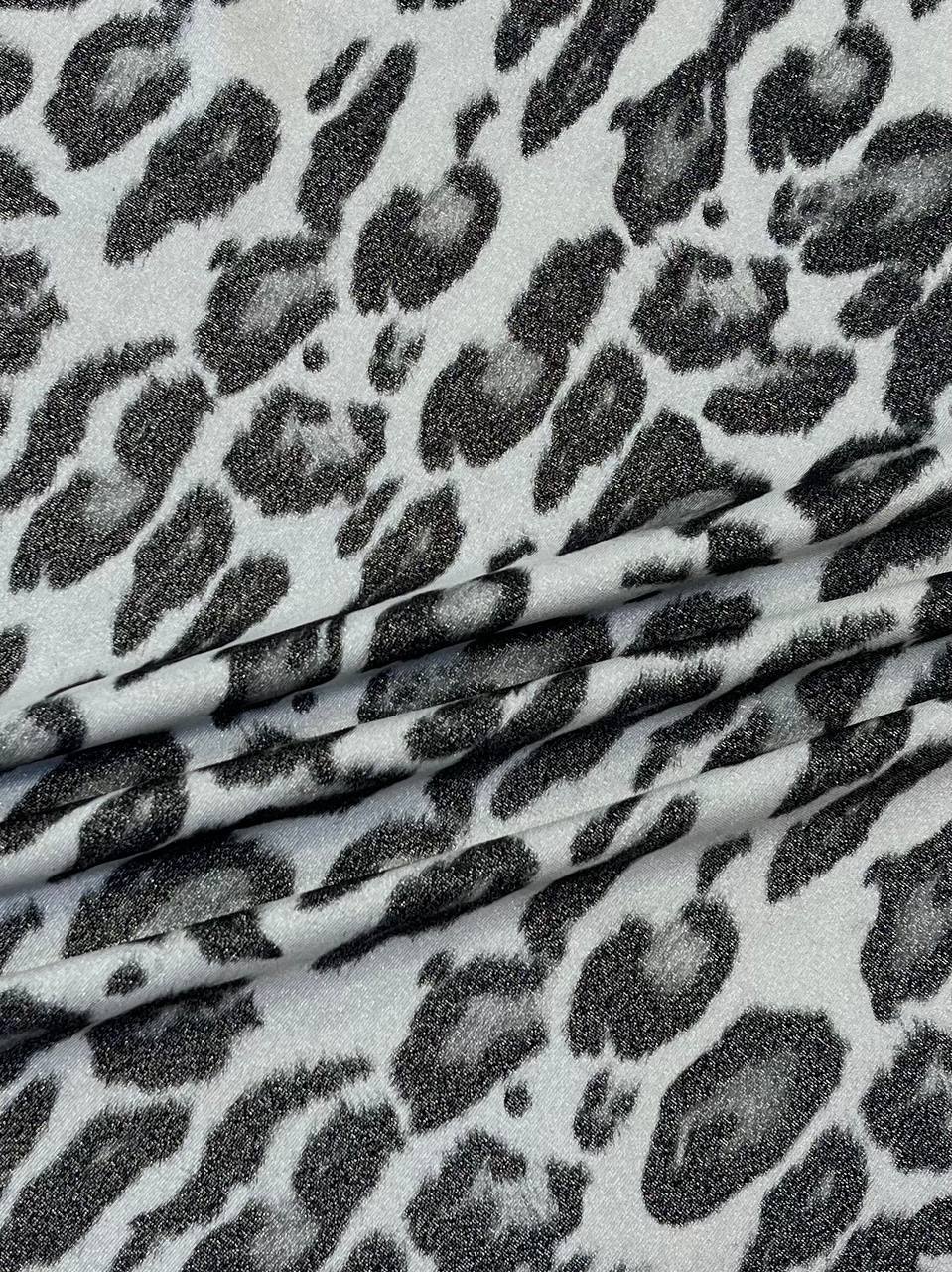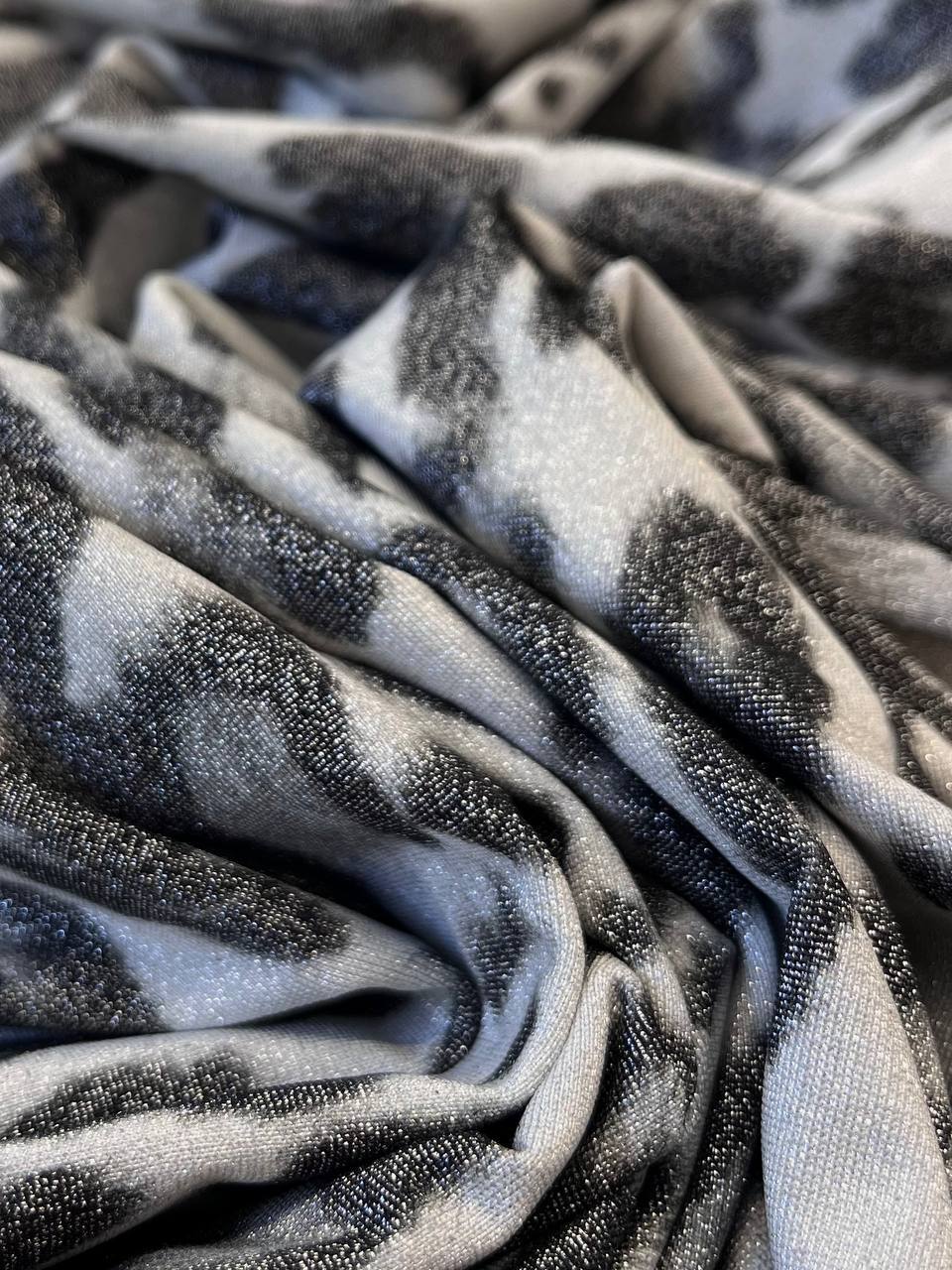 Лайкра с анималистическим принтом в сочетании серых оттенков и серебряной нитью люрекса