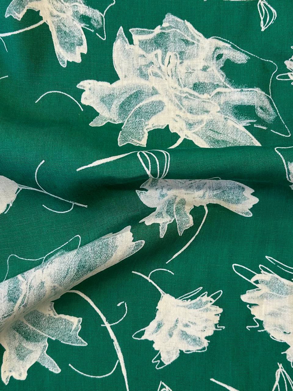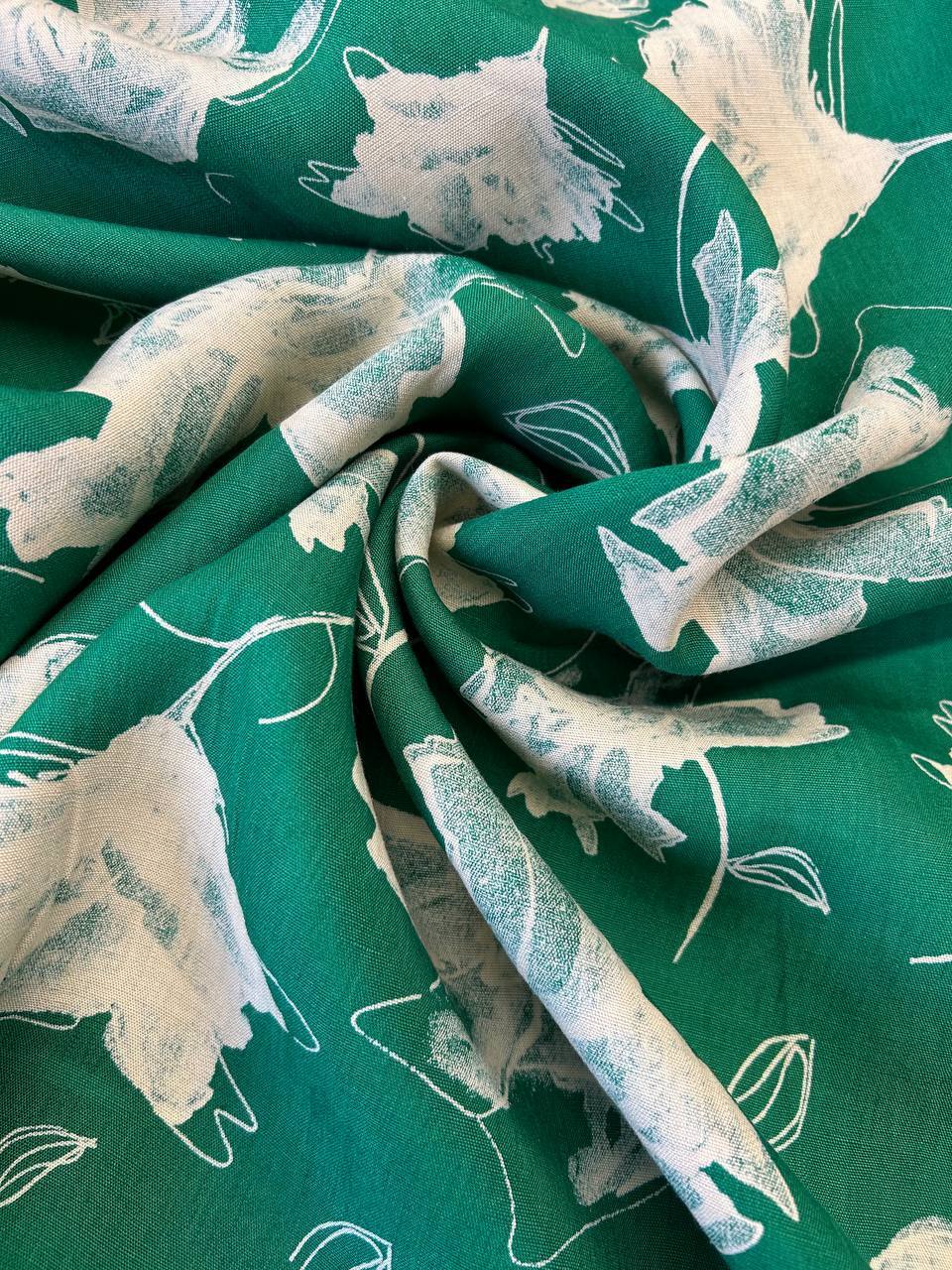 Лен плотный, не просвечивает, собирается в крупные формодержащие складки.