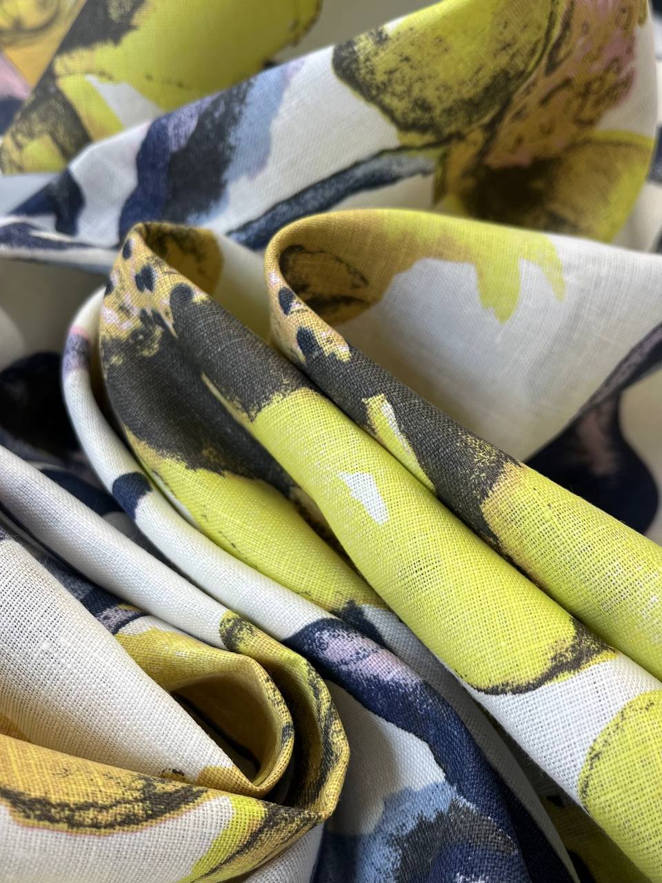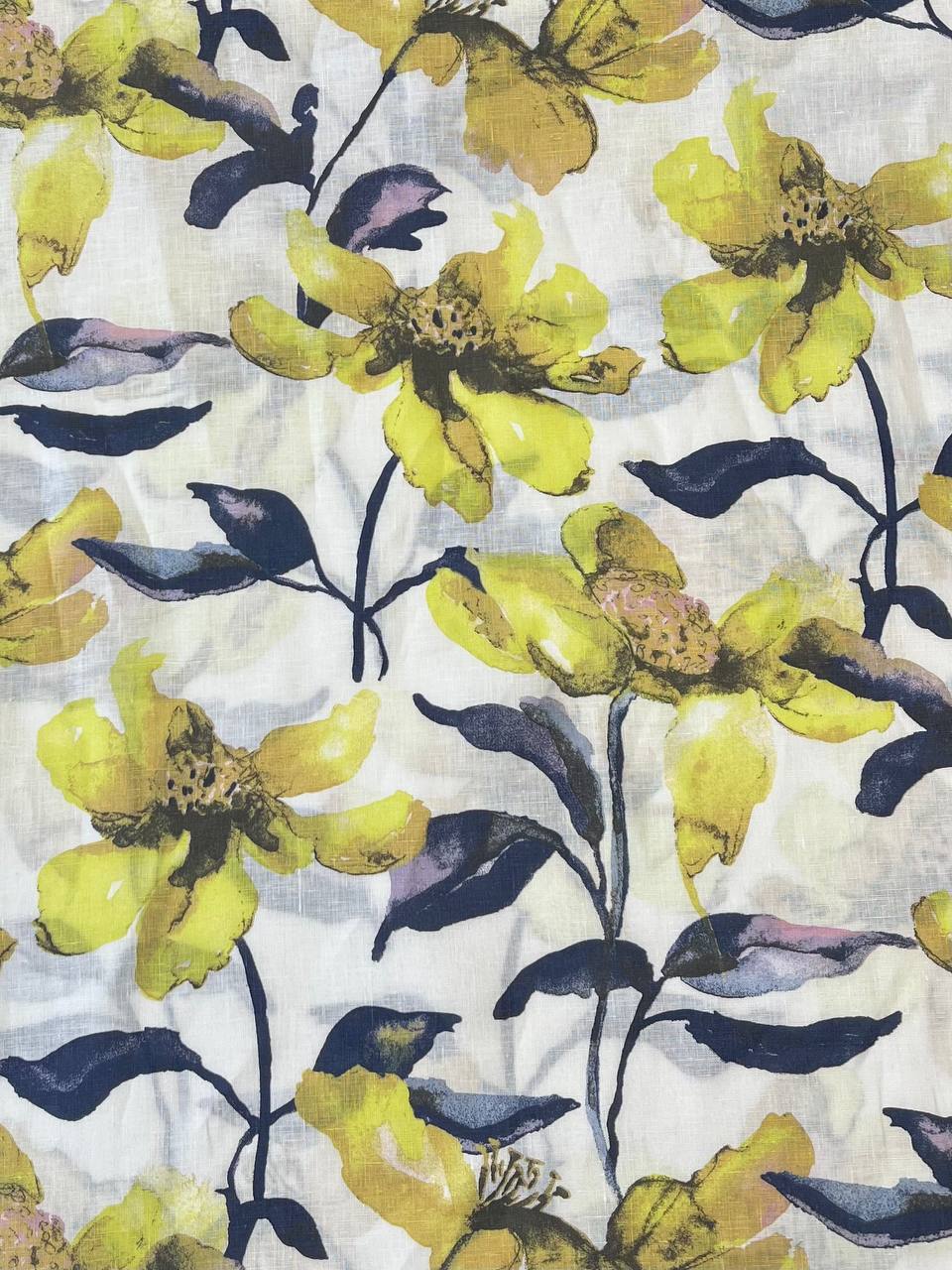 Лен с изящным принтом в акварельной технике - крупные желтые цветы