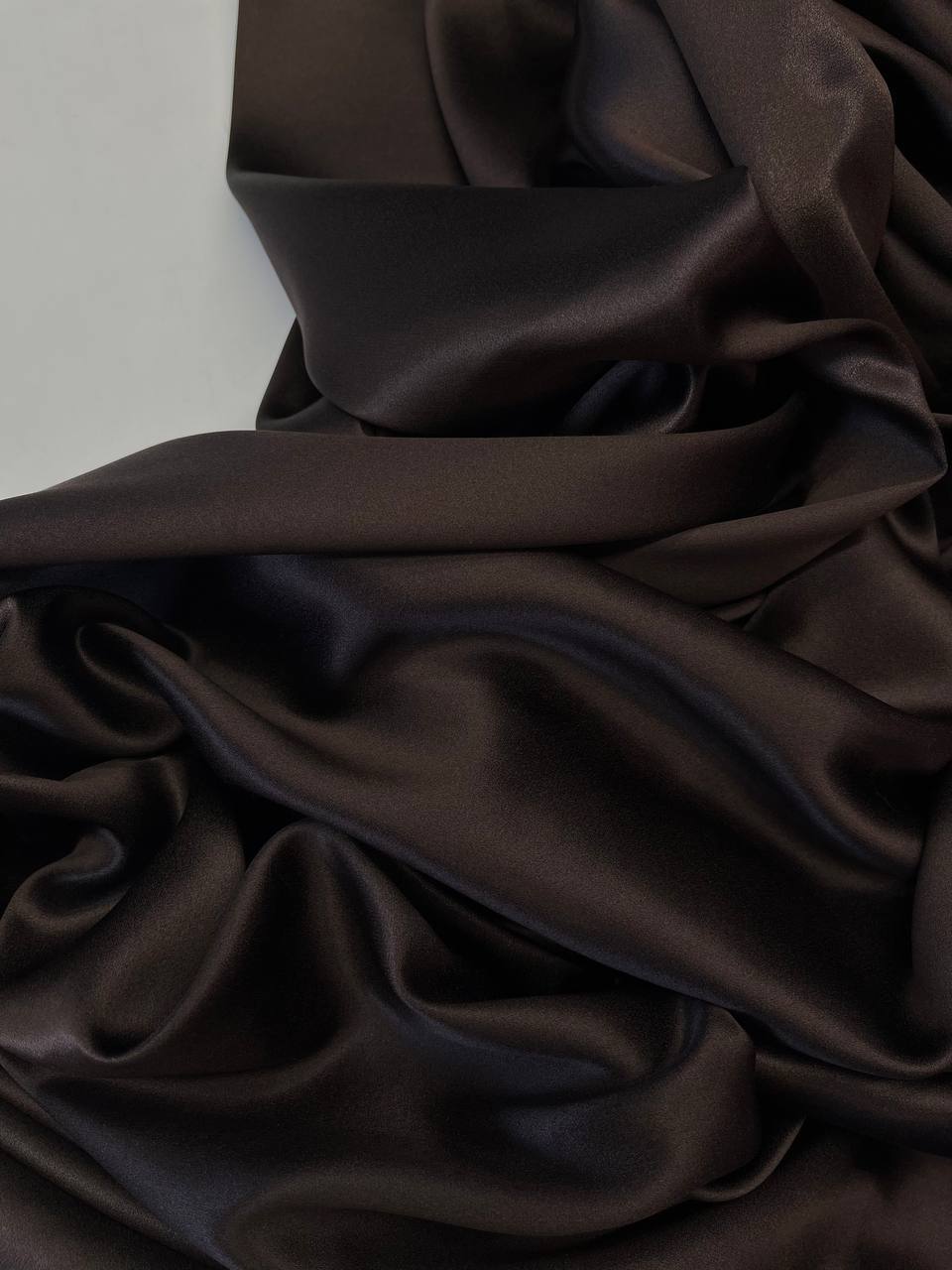 Плотный атласный шелк в оттенке темного шоколада