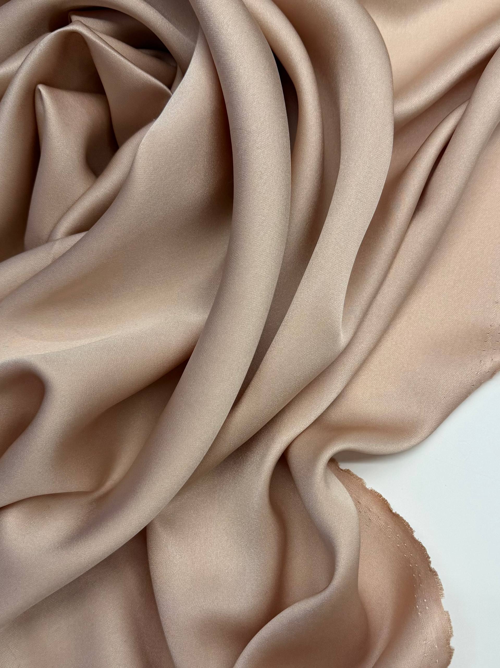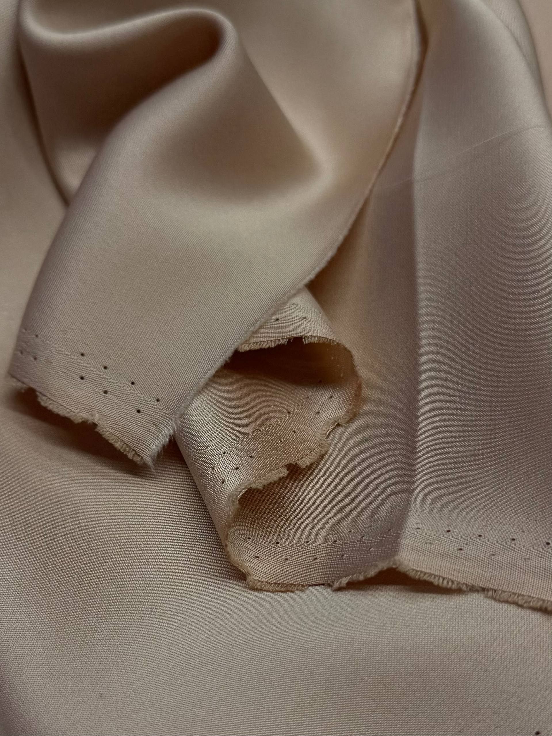Шелк полотняного переплетения с красивым лоском. Не просвечивает. Плотность позволяет сшить брюки палаццо, платья, блузы и костюмы в пижамном стиле.