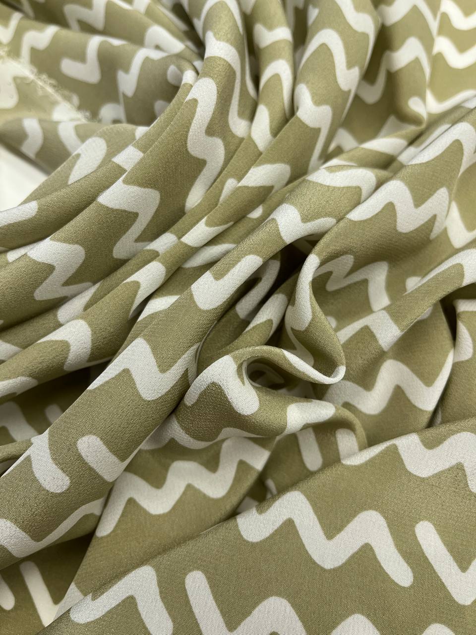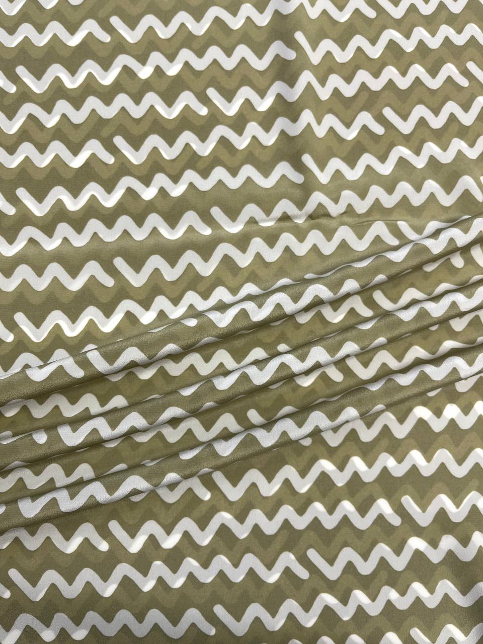 Креповый шелк от бренда ROSSO 35 в светло-оливковом оттенке в контрастными волнами