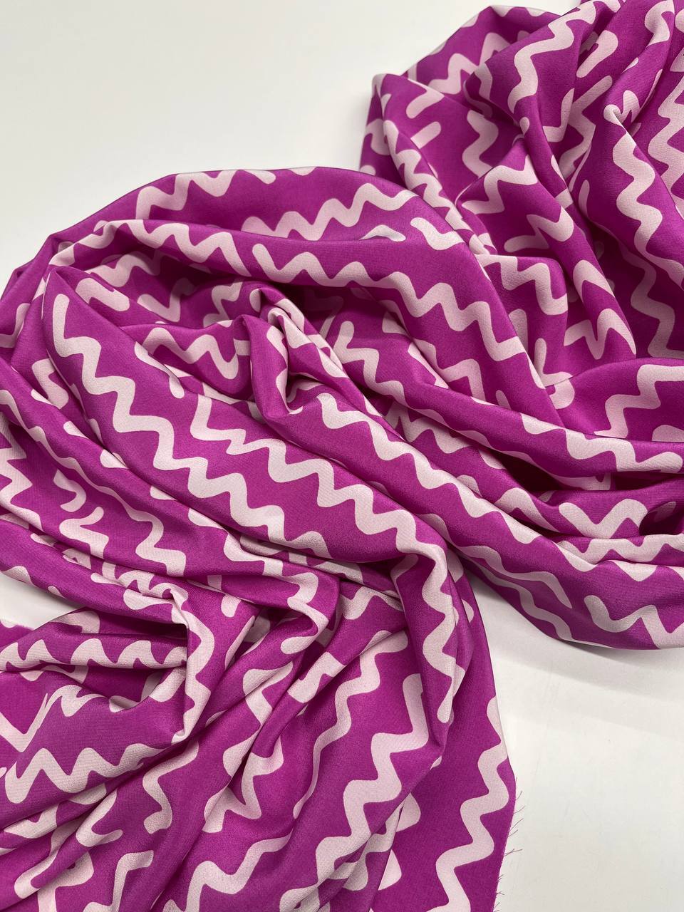 Креповый шелк от бренда ROSSO35 в цвете цикламена с контрастными волнами