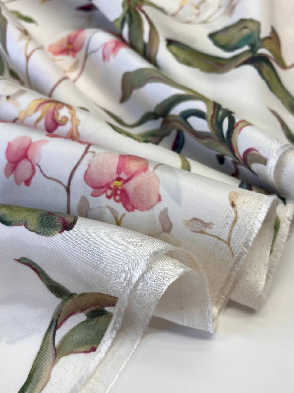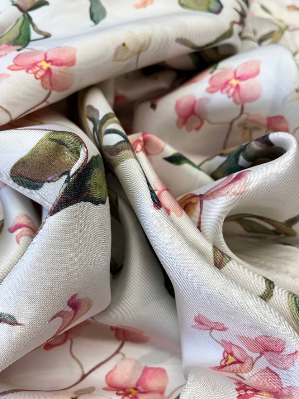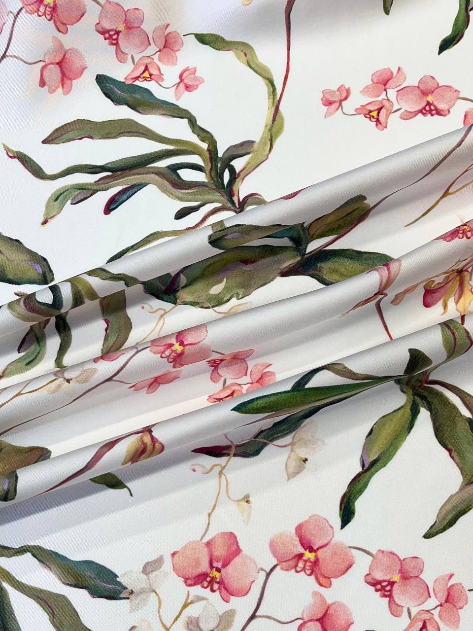 Шелк с нежнейшим и женственным принтом - розовыми орхидеями