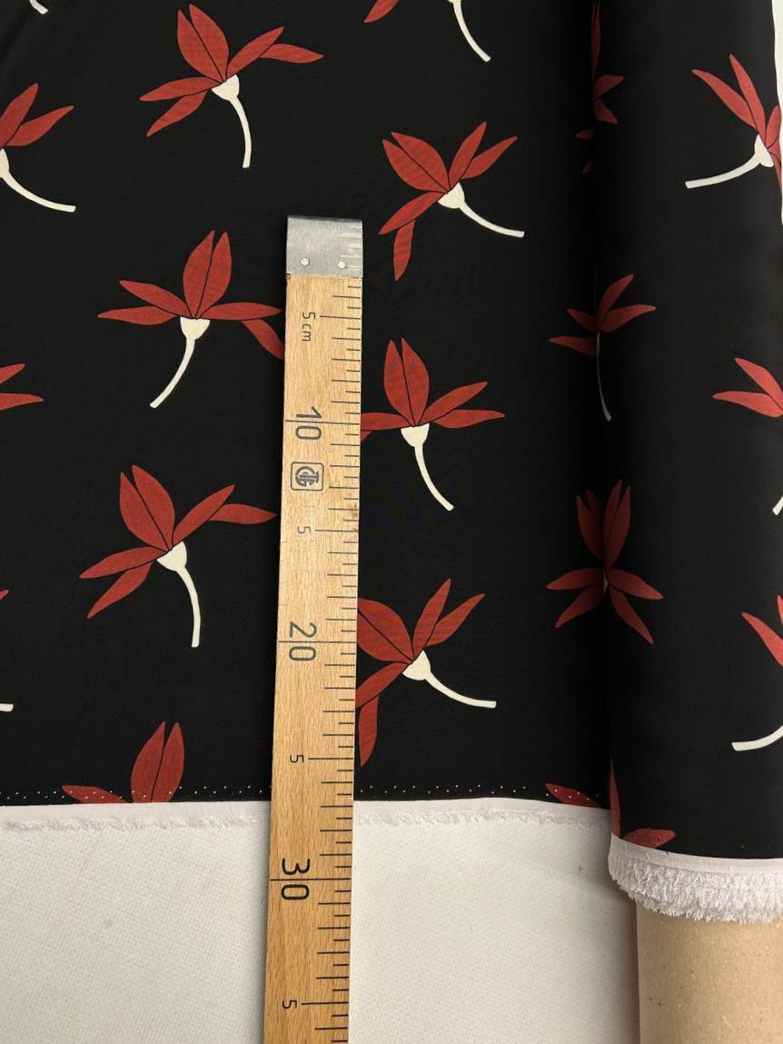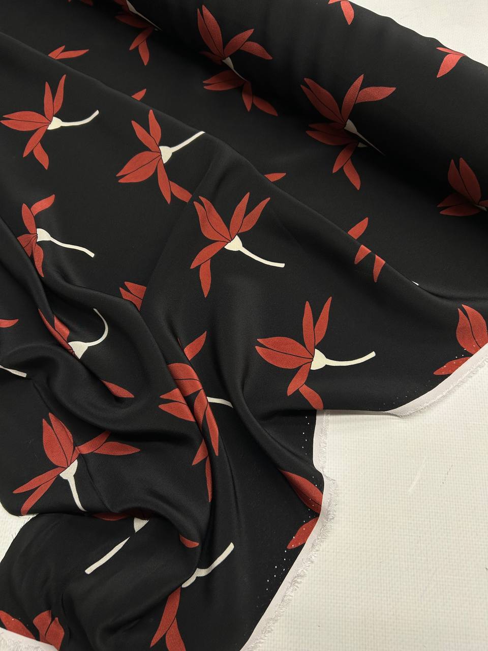 Тонкий, немного просвечивает на просвет. Рисунок среднего размера, не мнется и красиво струится.