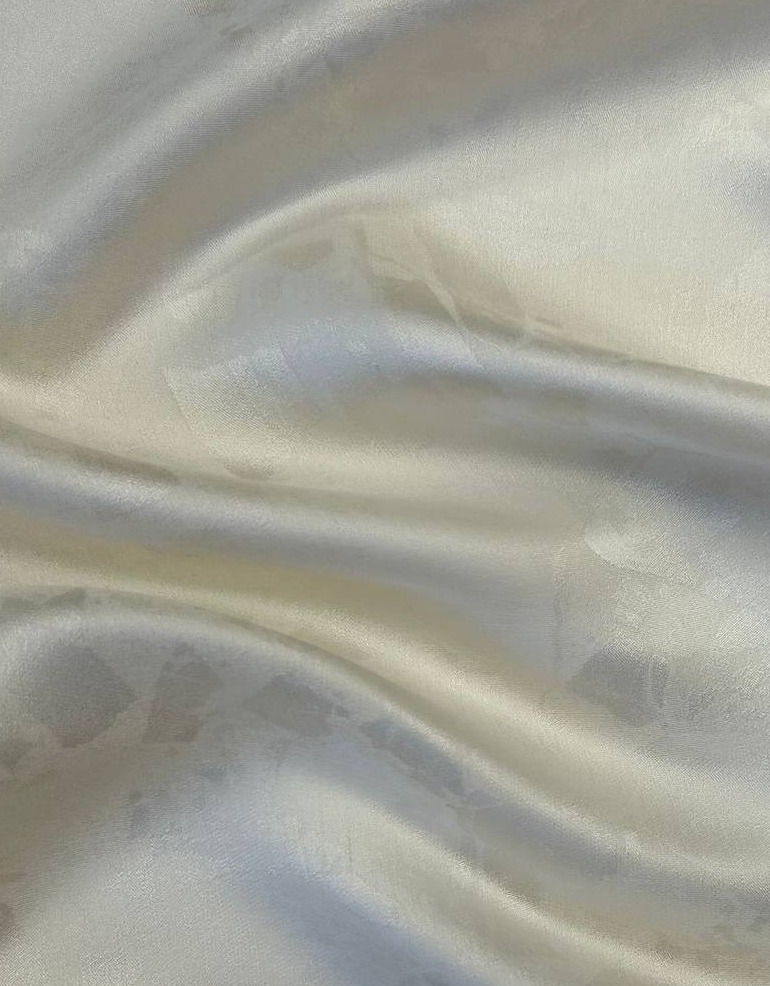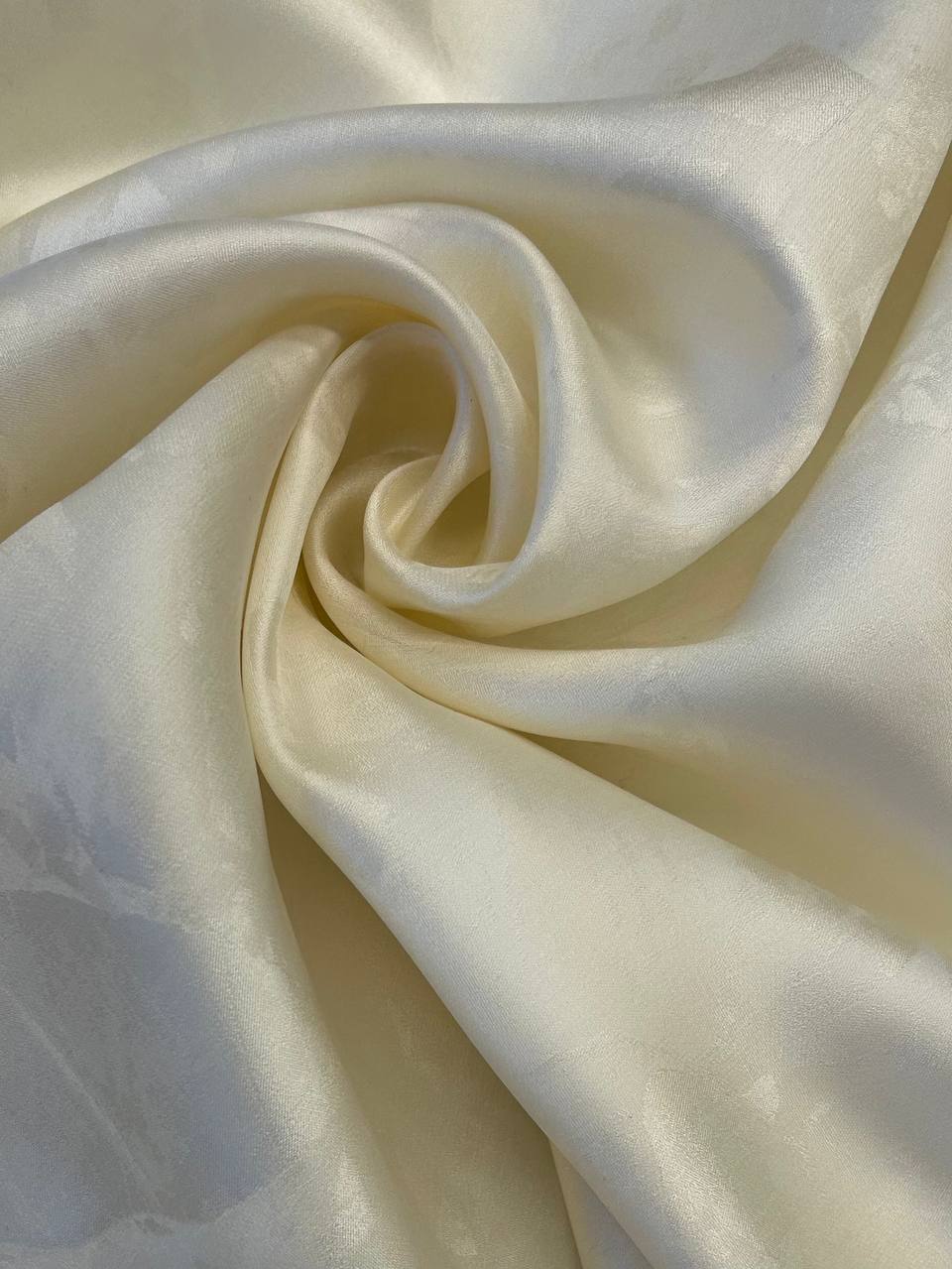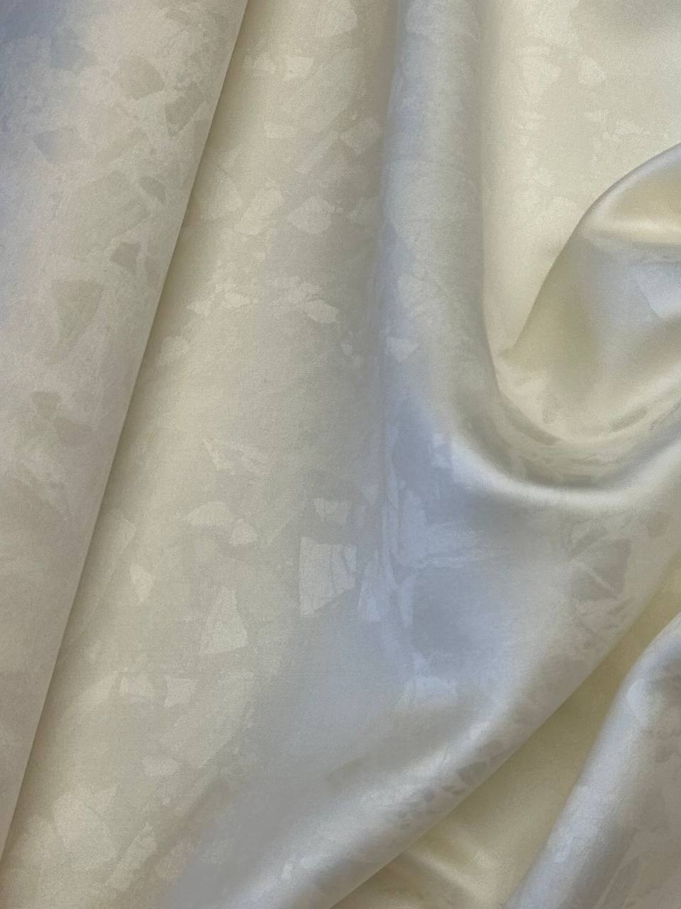 Имеет очень красивый лоск, слегка держит форму и немного просвечивает. Шьем красивые блузы и платья.