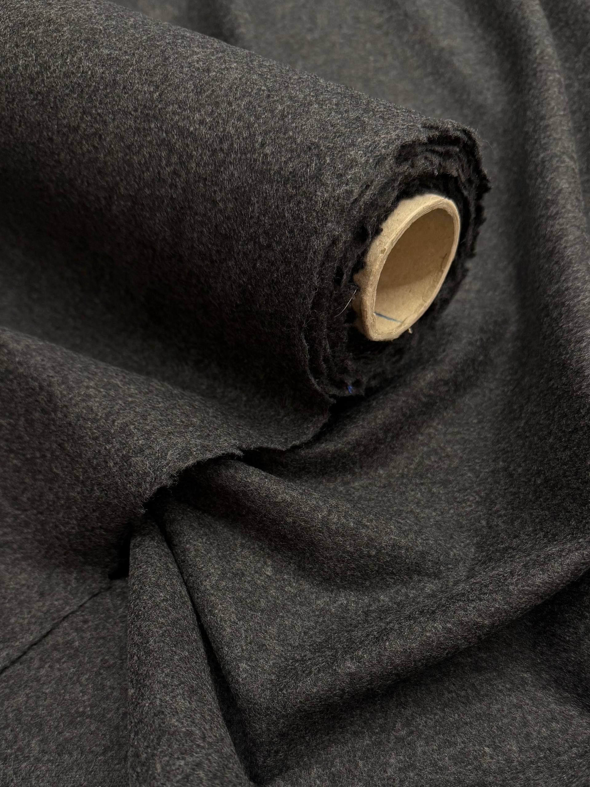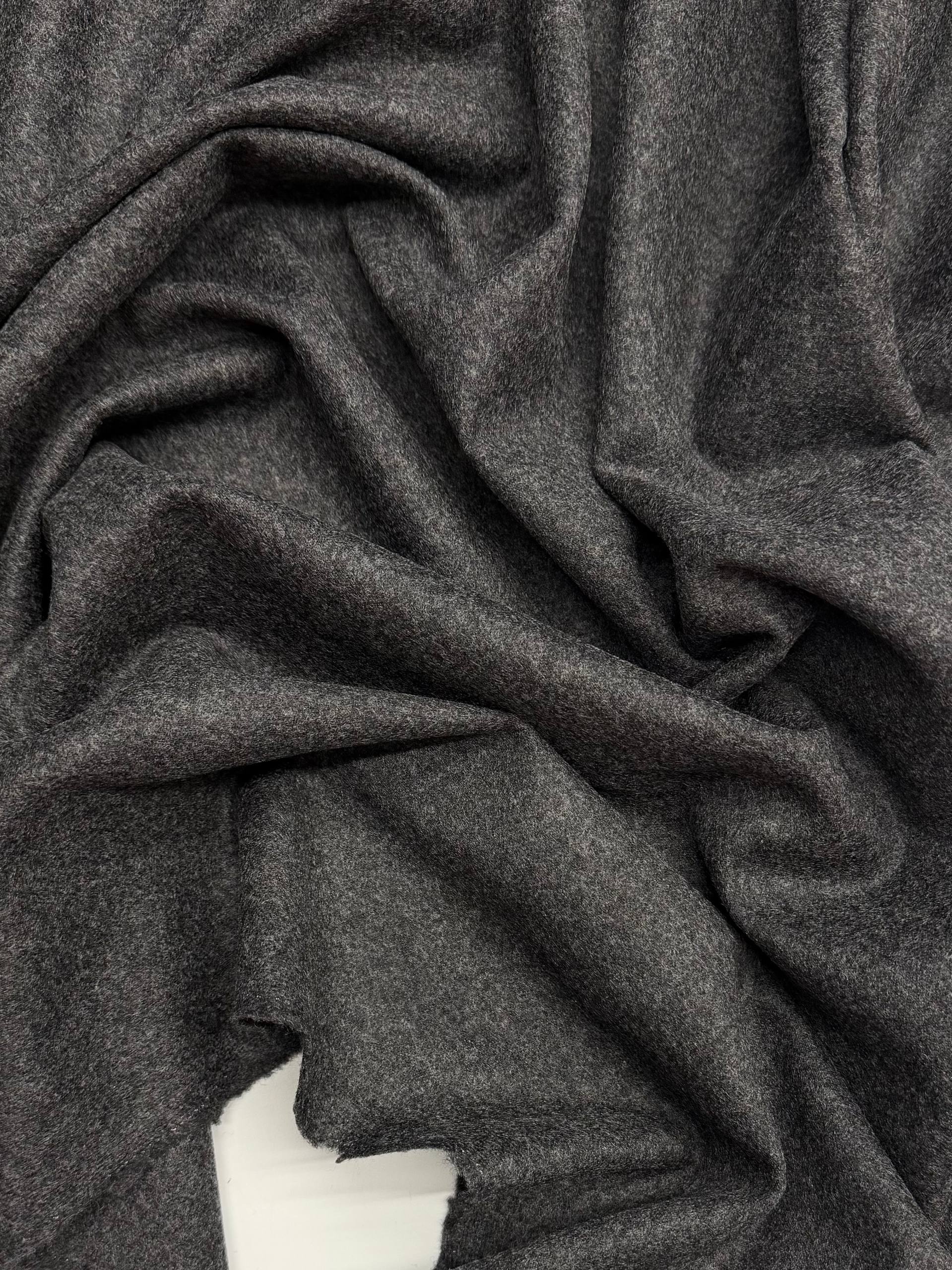 Костюмно-плательная шерстяная фланель в темно-сером графитовом цвете.