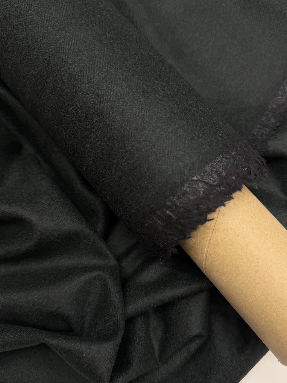 Шерстяная фланель, гладкая и уютная. Имеет красивый лоск, издалека елочка выглядит как меланж.
