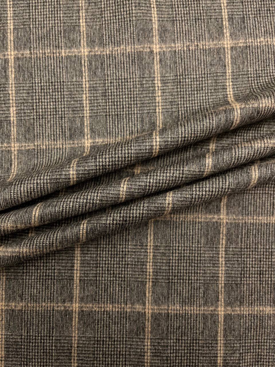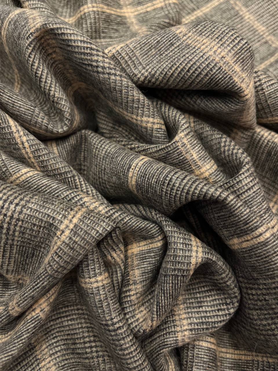 Шерстяная фланель в клетку «Принц Уэльский» в серо-бежевом цвете