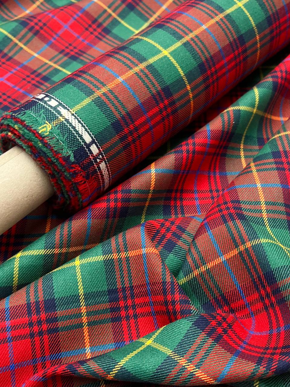 Шерсть в классическую клетку тартан в красно-зеленой гамме