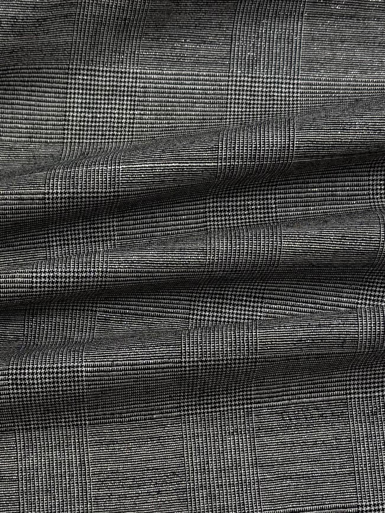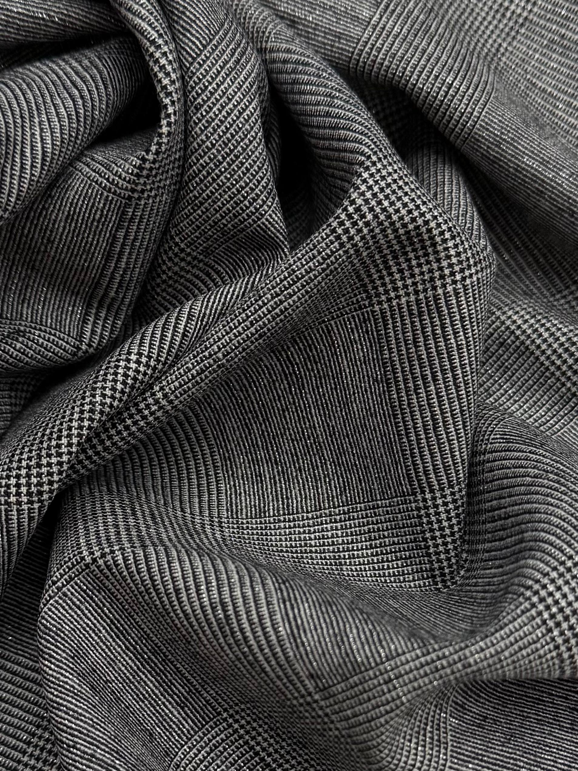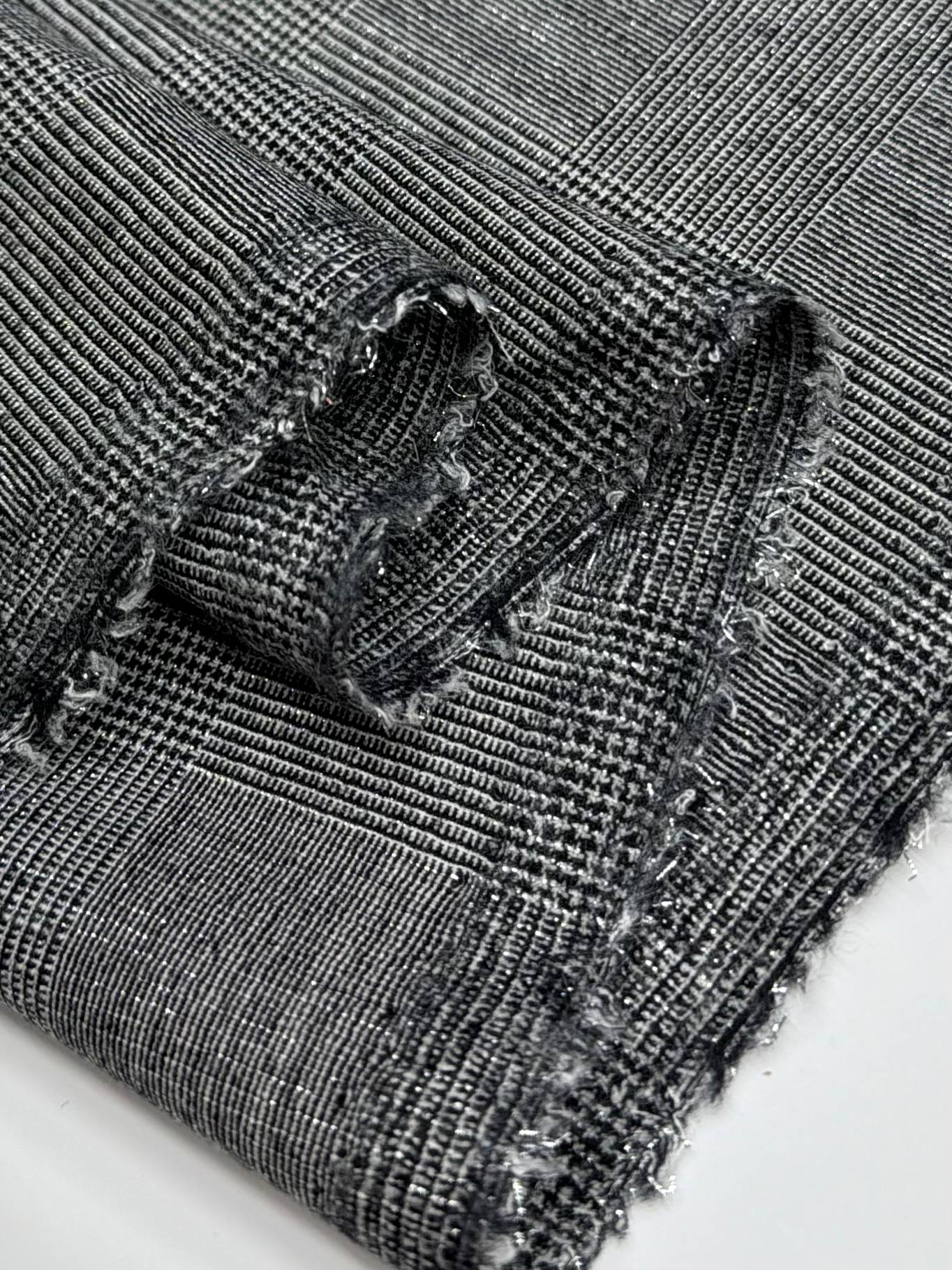 Средней костюмной плотности, пластичная, не мнется. Нитки люрекса не колятся.