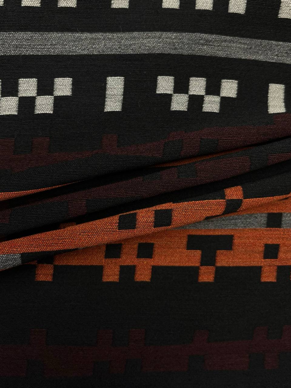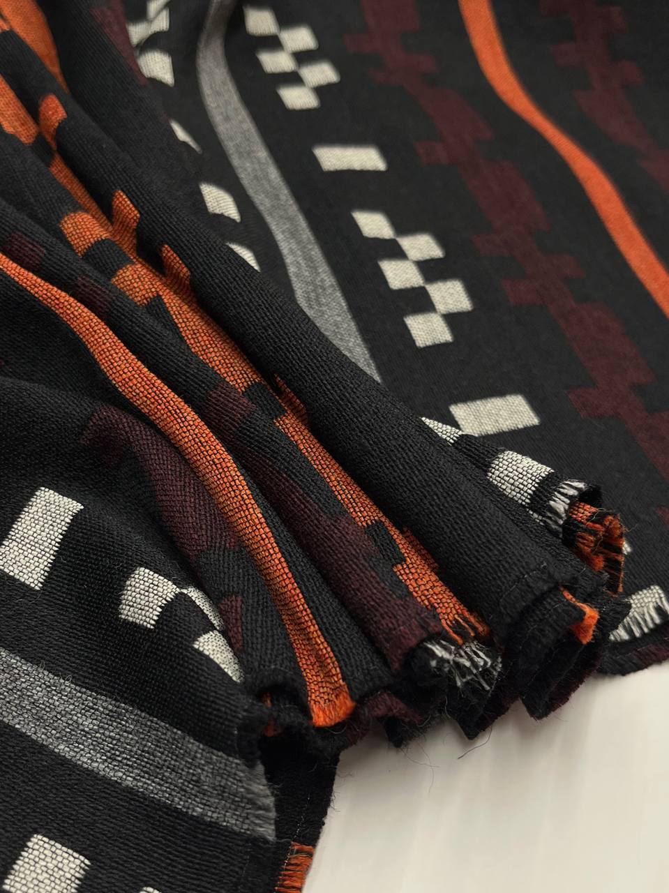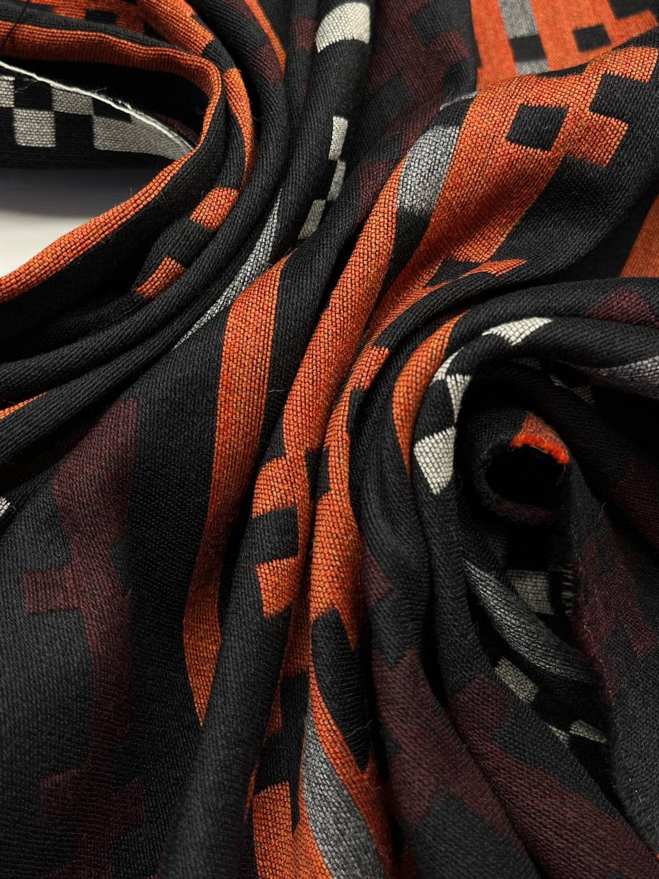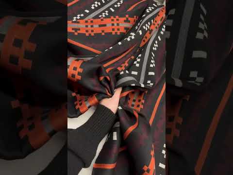 Костюмно-плательная плотность. Драпируется объемные формодержащие склалки, не заминается. Полотно пластичное, не рыхлое. Орнамент расположен горизонтально. Рапорт 41 см
