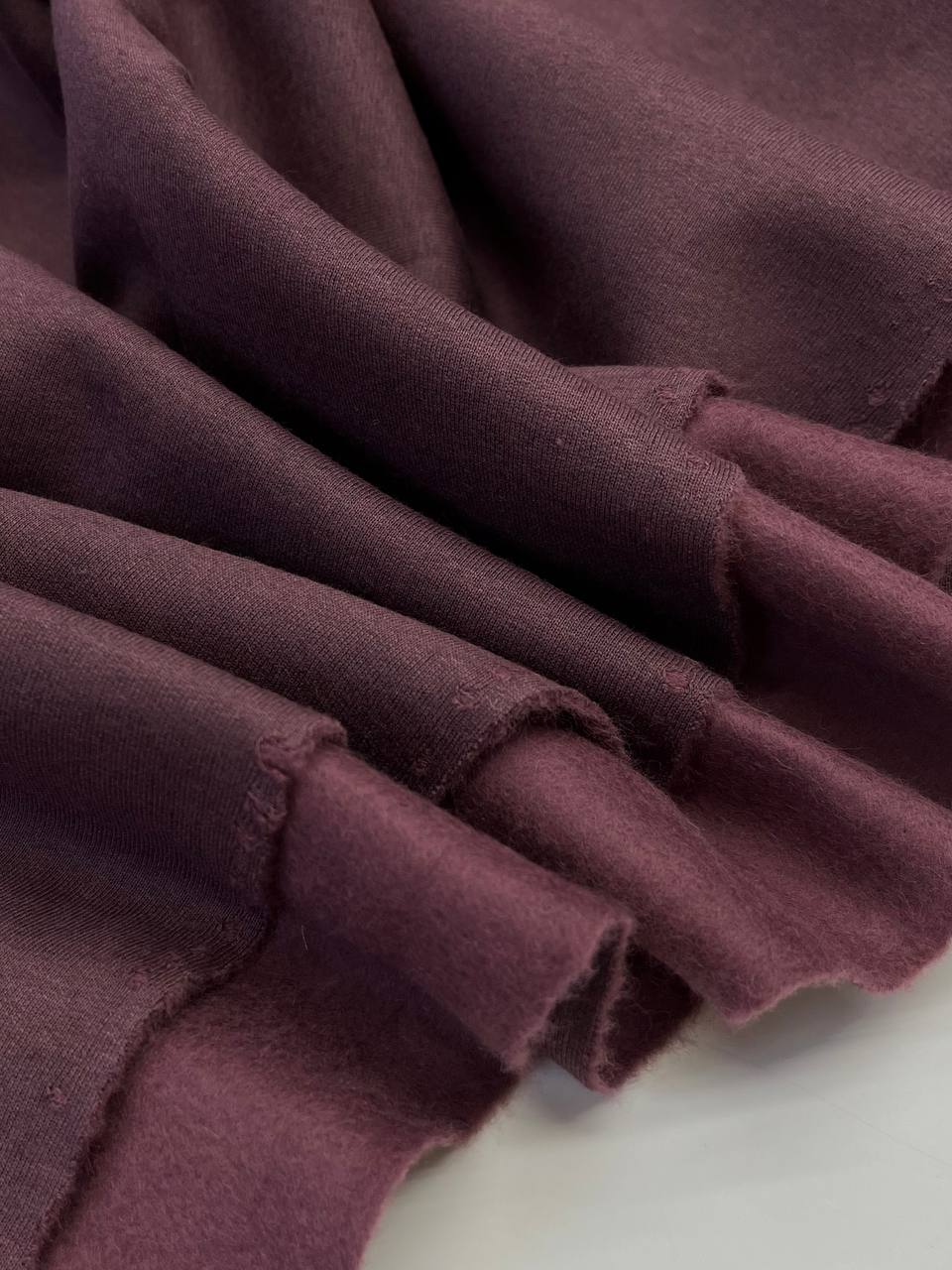 Хлопковый трикотаж от Loro Piana с мягчайшим начесом в сливовом оттенке