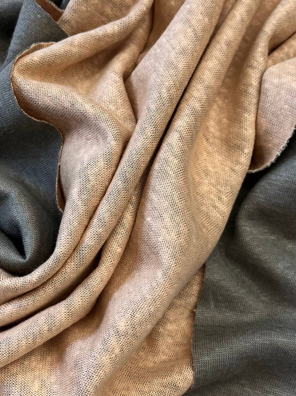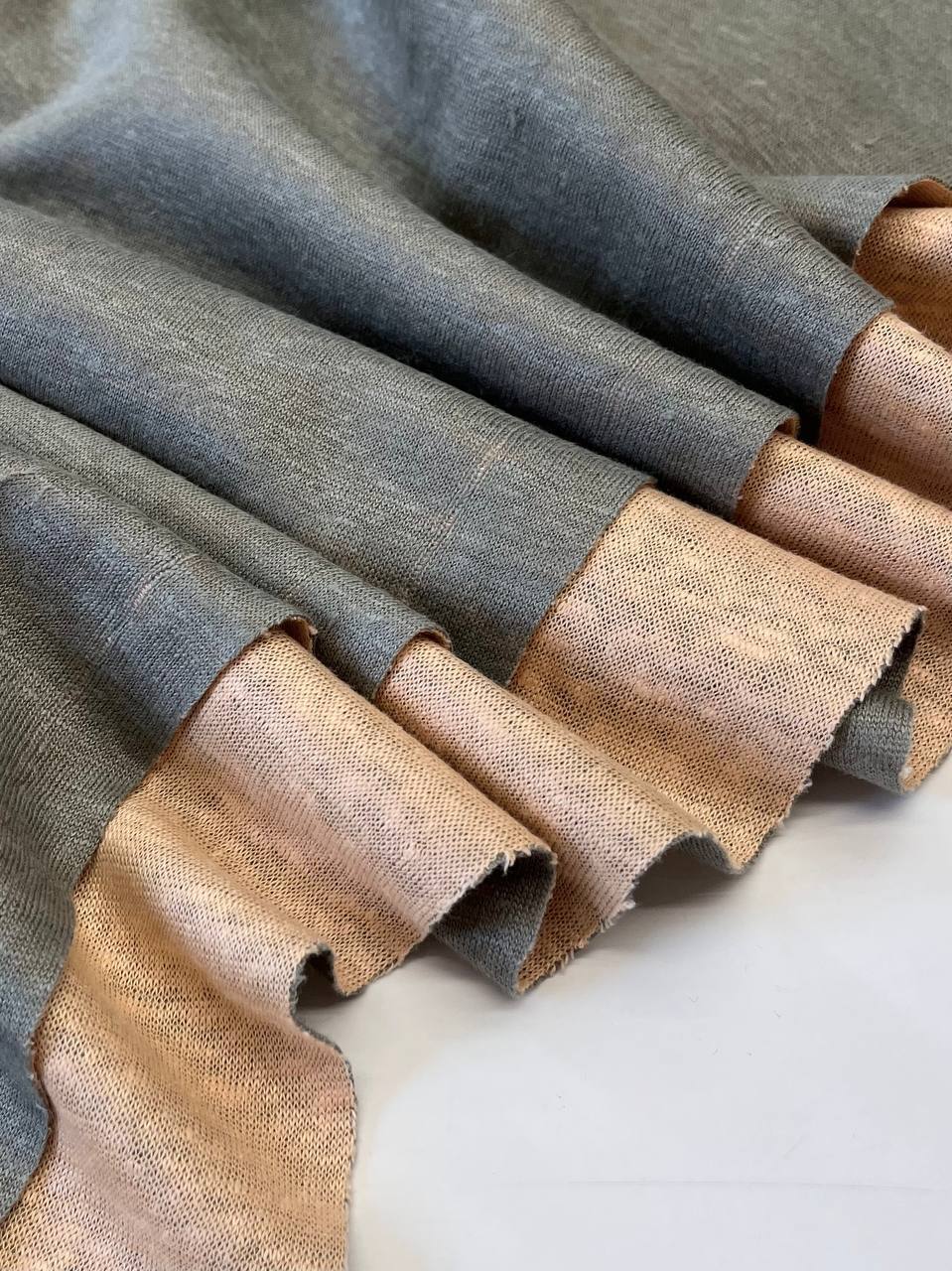 Льняной трикотаж double face в сочетании оттенков - оливкового и персикового