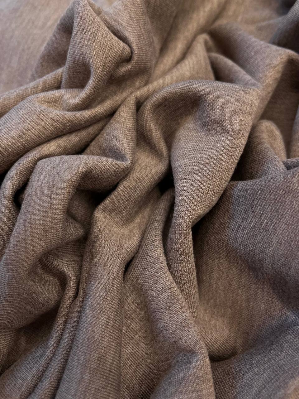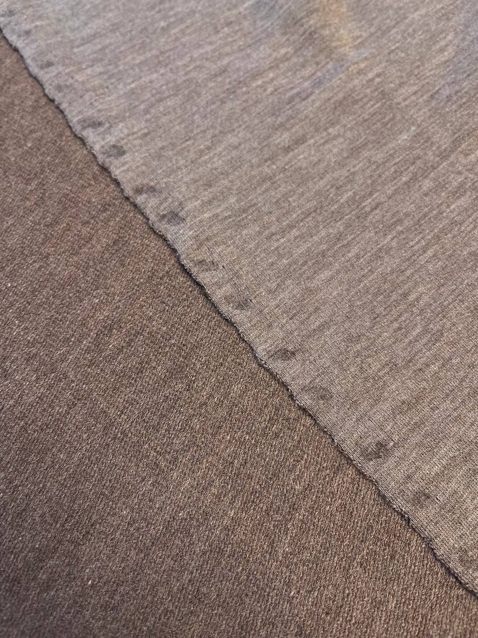 Трикотаж средней плотности, петля небольшого размера и плоская. Драпируется в мягкие складки, слегка может заминаться. Приятный тактильно, мягкий и комфортный на ощупь. Обладает слегка заметным лоском.