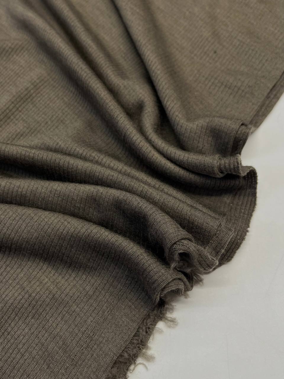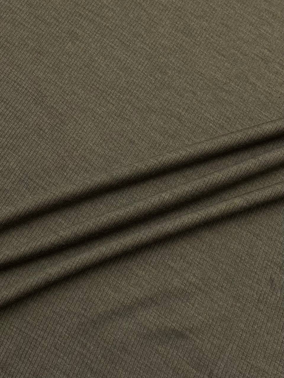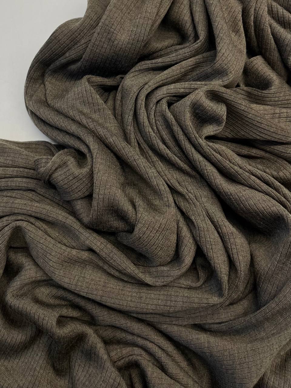 Шерстяной трикотаж в рубчик от фабрики Dondi в цвете хаки