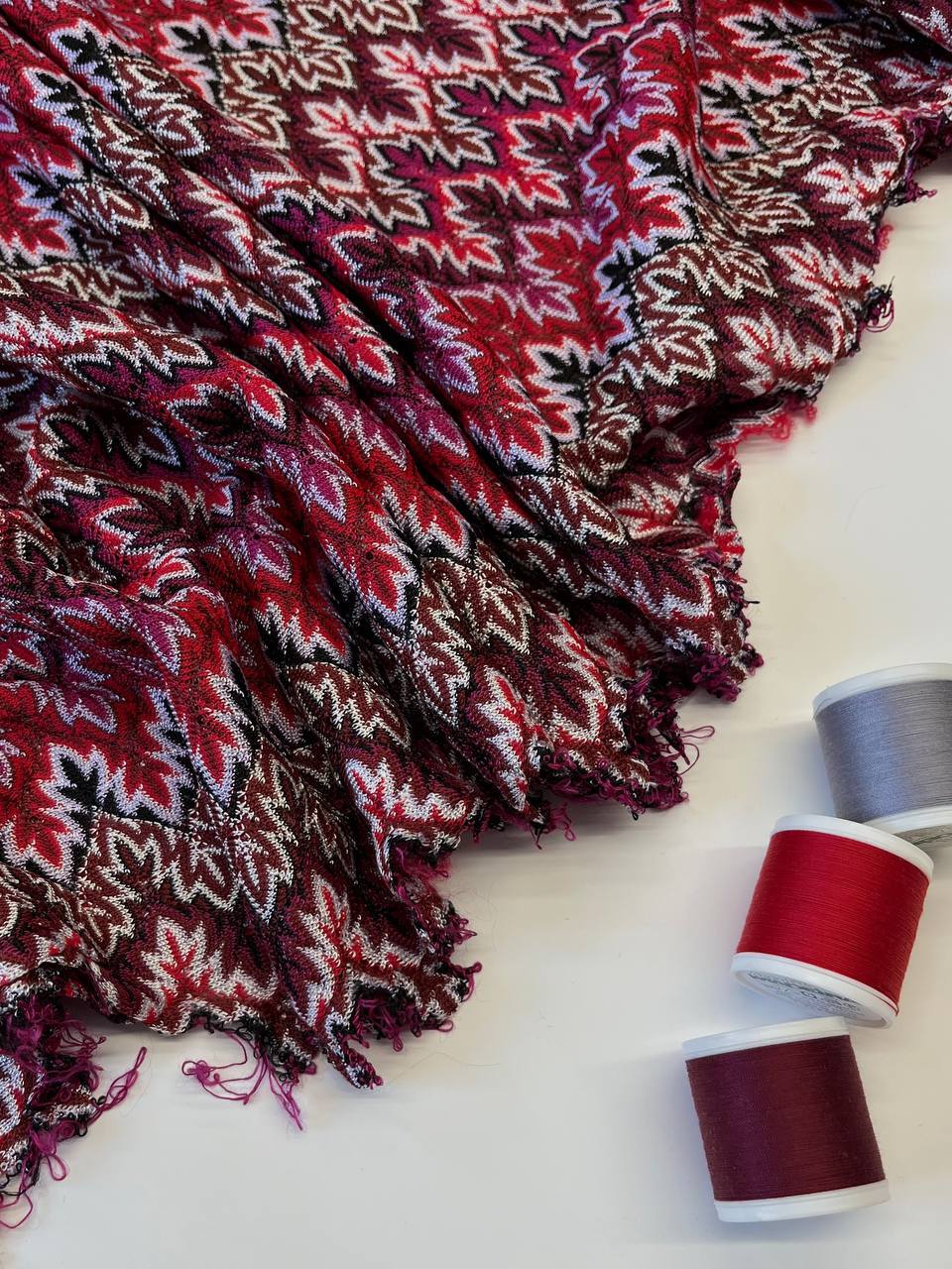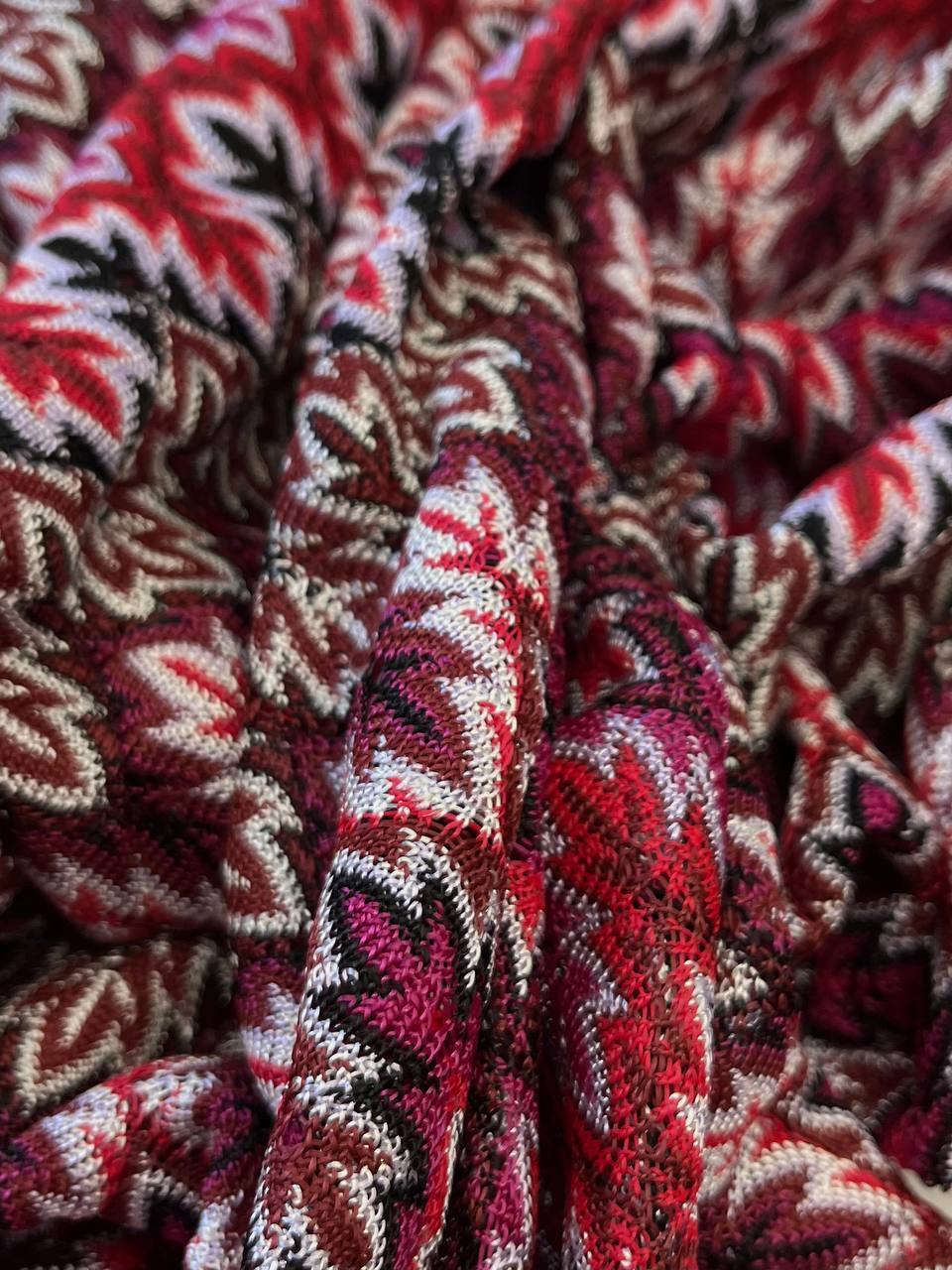 Трикотаж ажурной вязки от бренда Missoni в красно-малиновой гамме