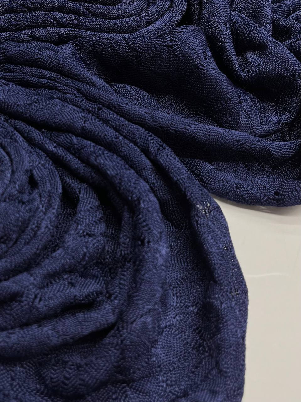 Трикотаж ажурной вязки от бренда Missoni в сине-фиолетовом оттенке