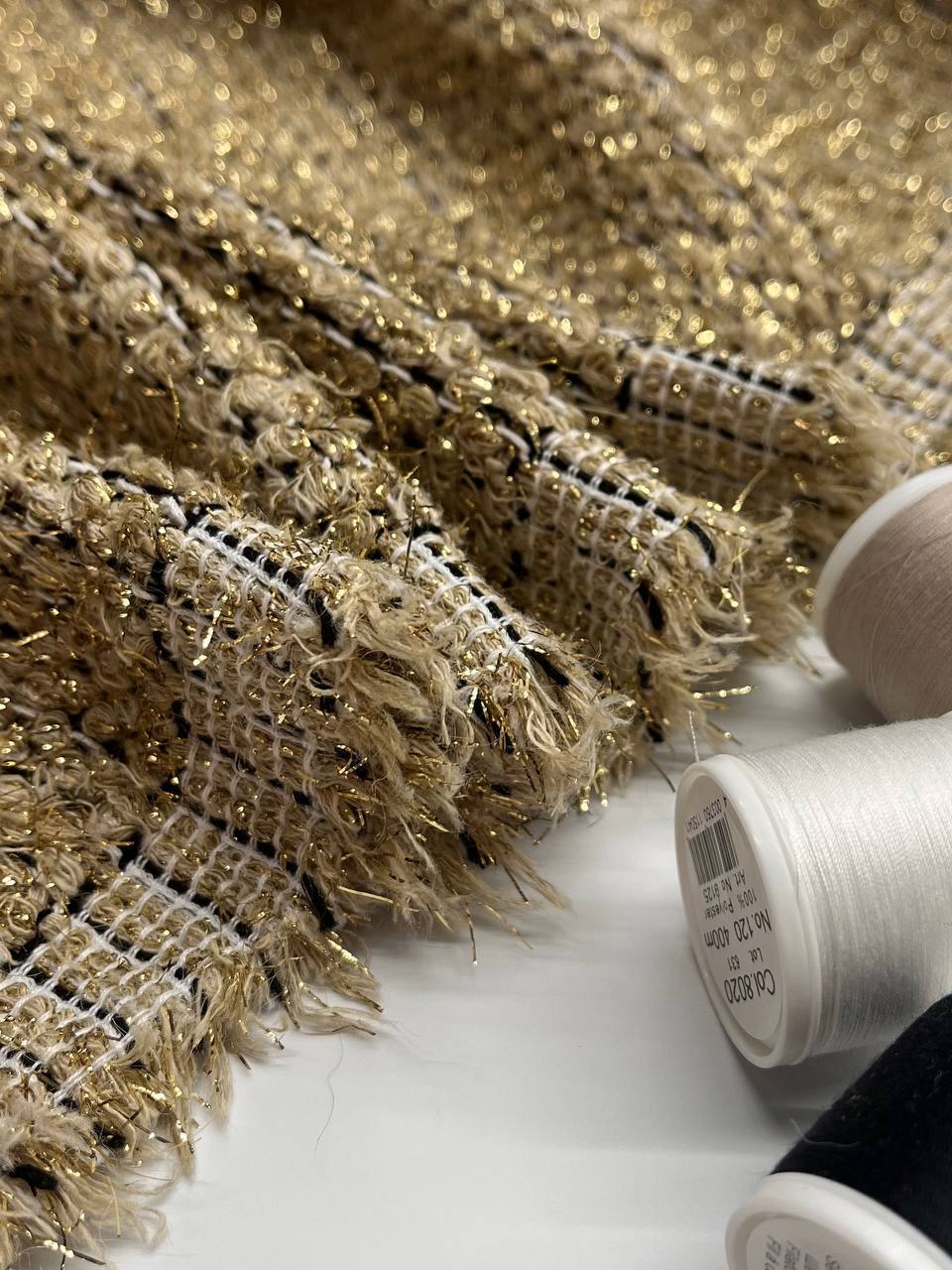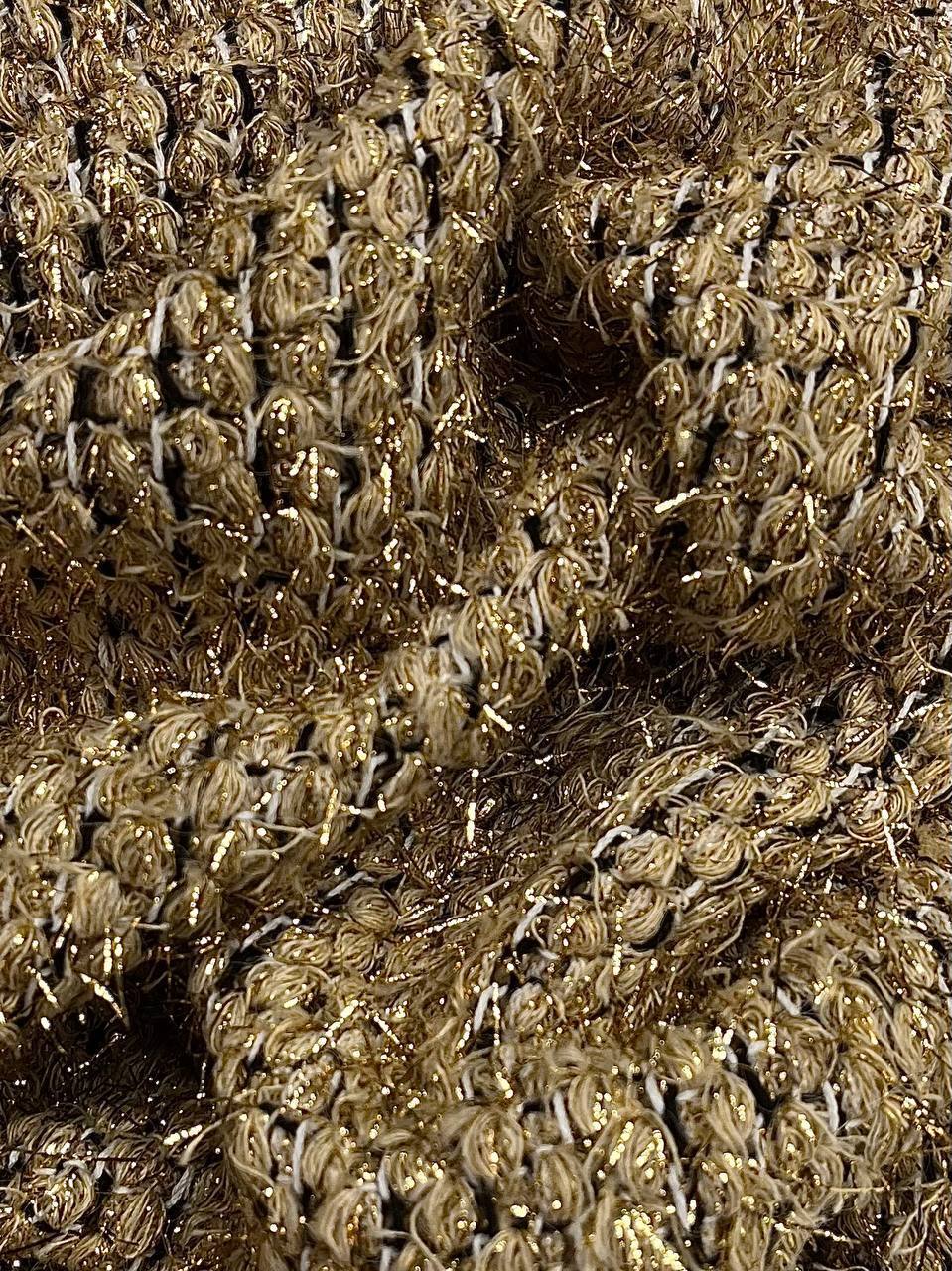 Фактурный твид от бренда Gucci в элегантном сочетании - бежевого, золотого, молочного и черного