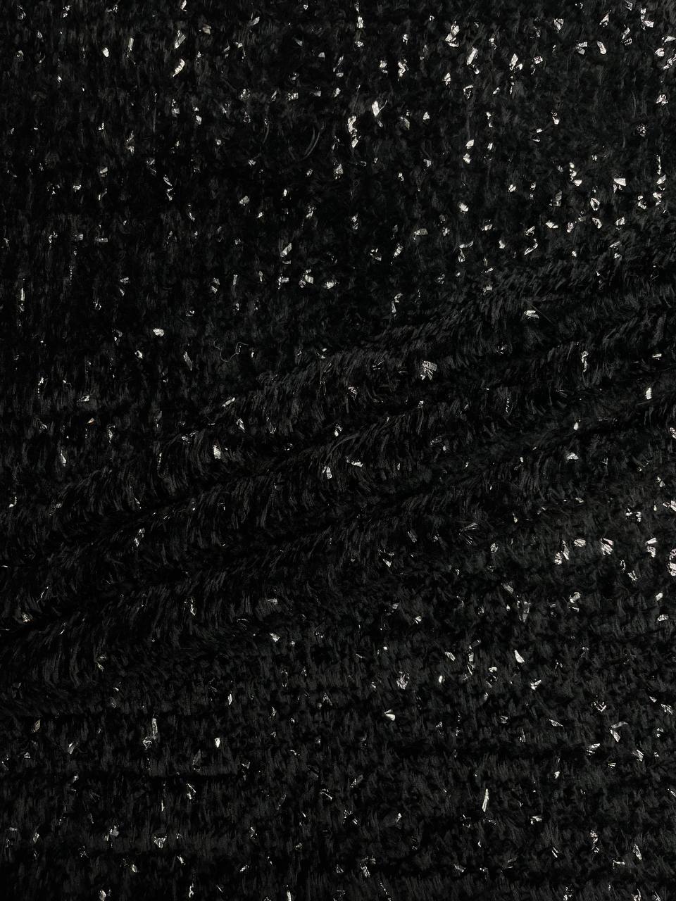 Пушистый черный твид Herno с серебристыми вкраплениями