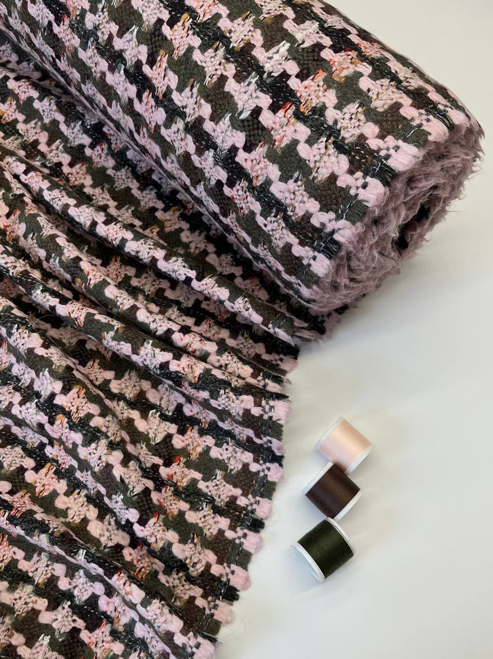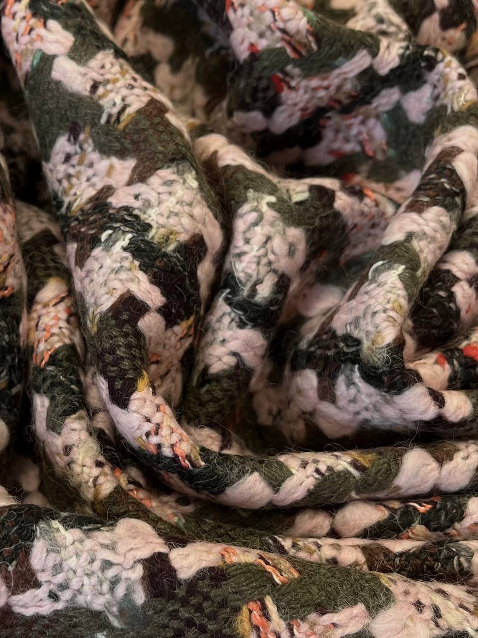 Шерстяной твид с приятными нотками пастельно-розового.