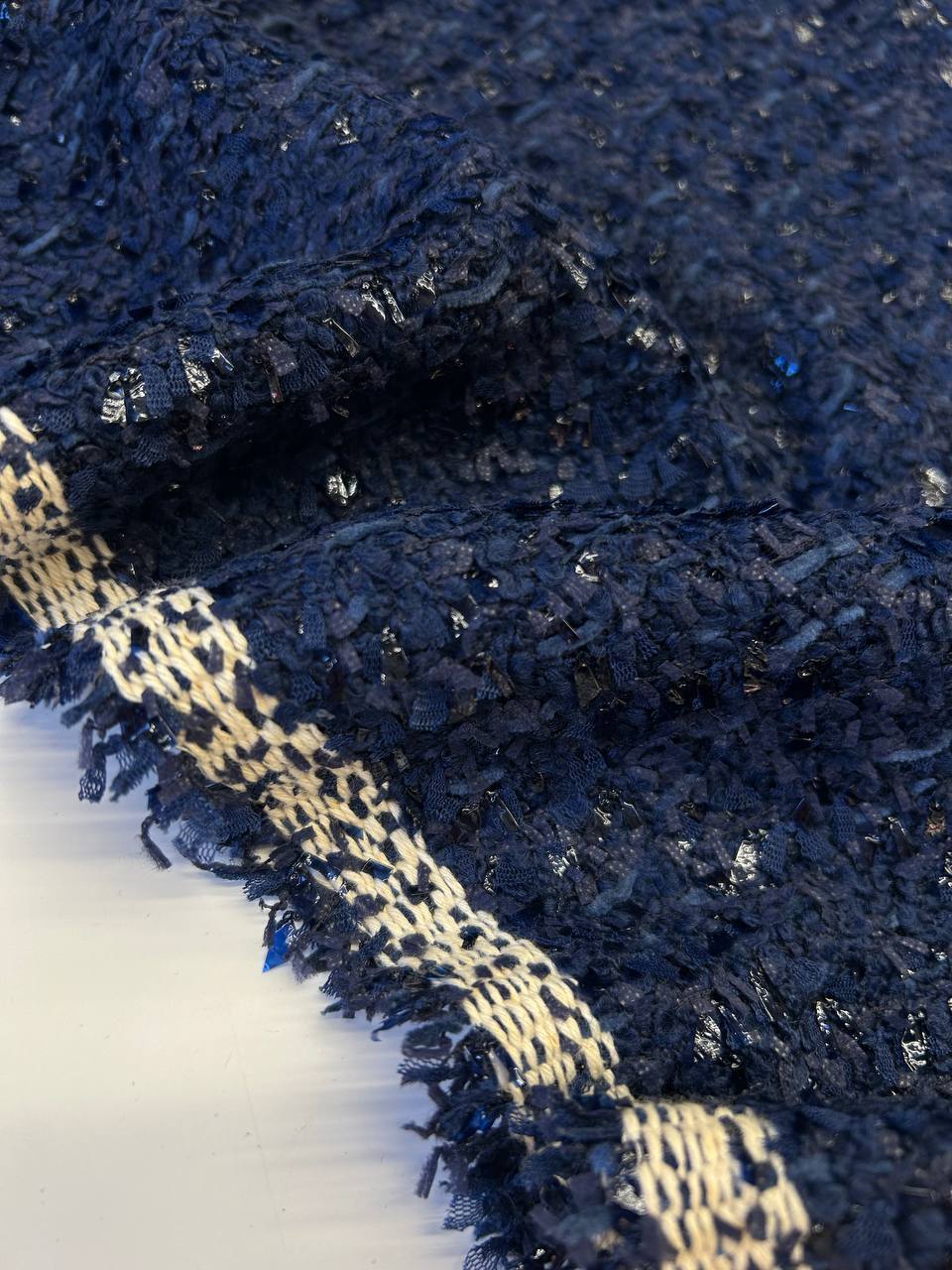 В твиде переплетаются различные фактурные нити, среди которых целлофановая, которая придает блеск и оригинальность.