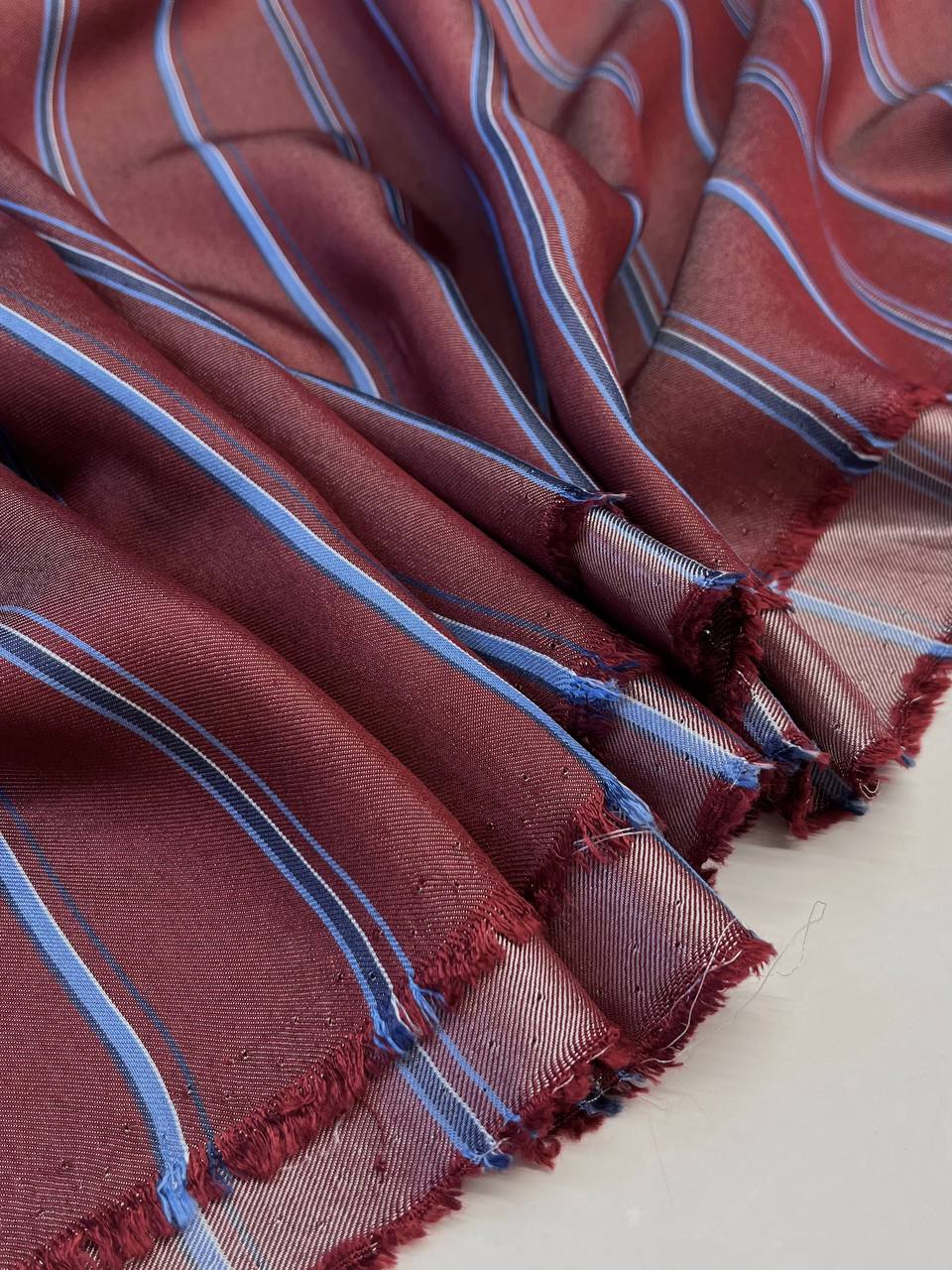 Струящаяся бордовая вискоза Saint Laurent в голубую полоску
