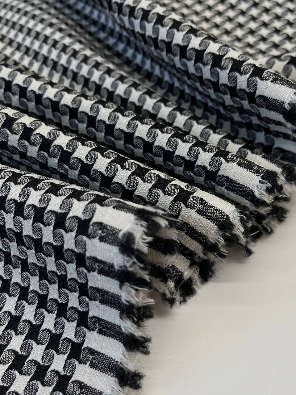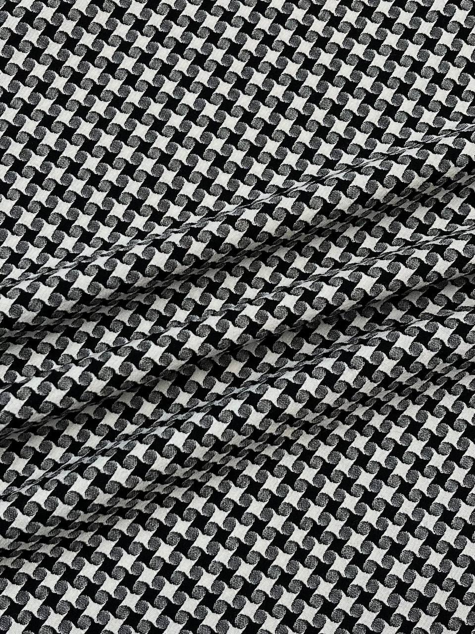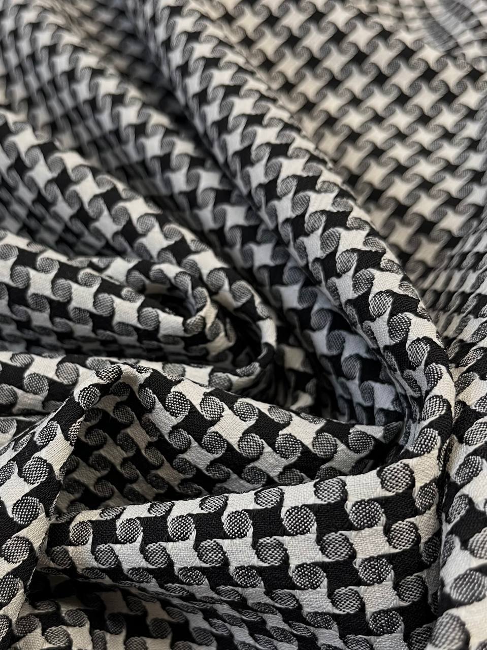 Плательный жаккард с гипнотическим узором в монохромном сочетании цветов